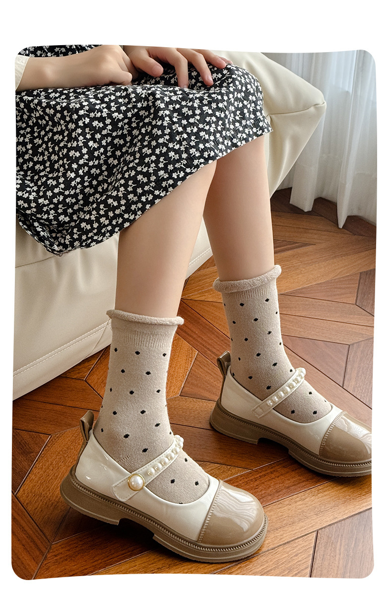 여자 양말 두껍게 따뜻한 면 양말 테리 중간 튜브 양말 한국 폴카 도트 타월 어린이 양말 큰 어린이 양말스토어 가기