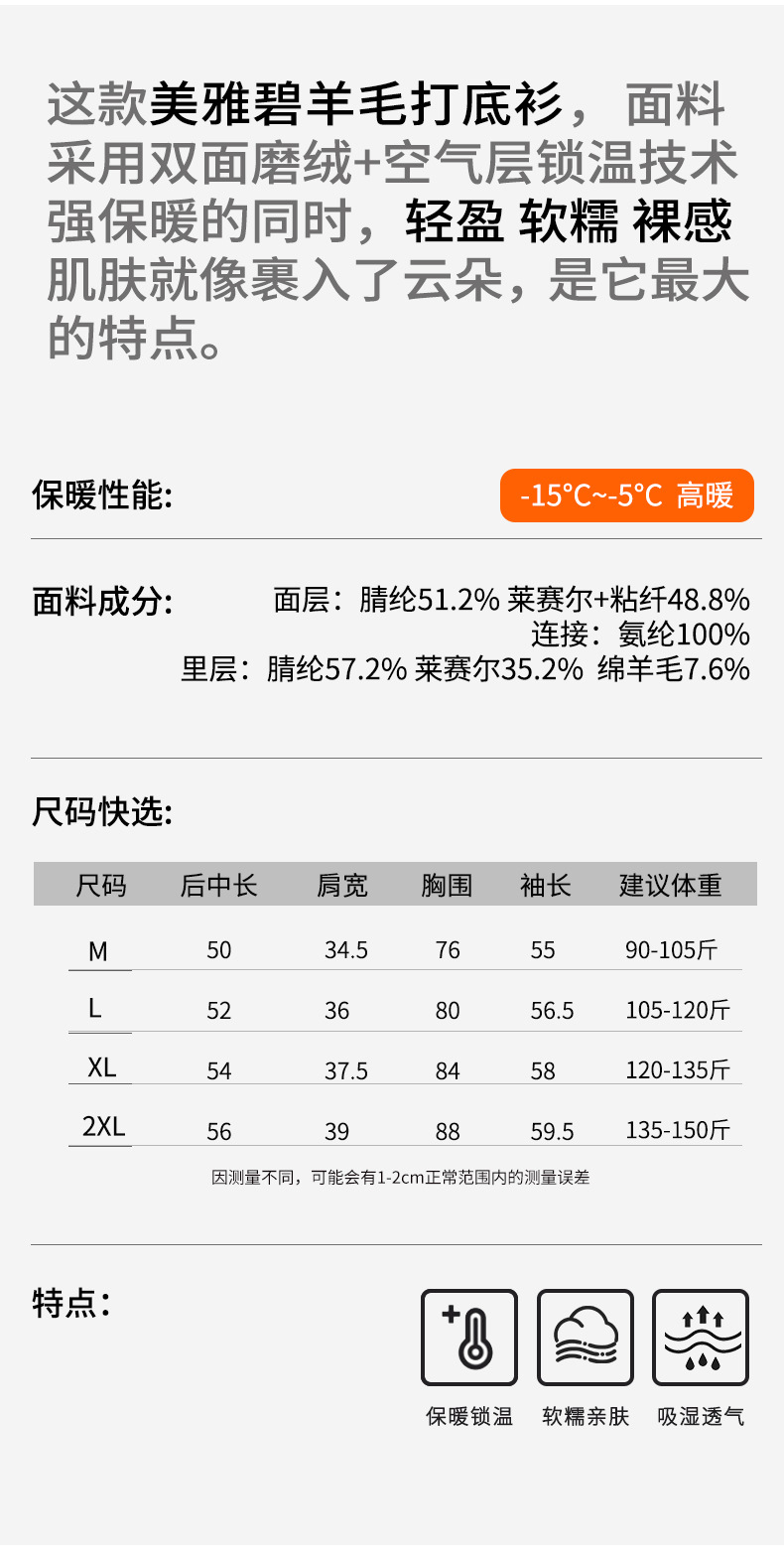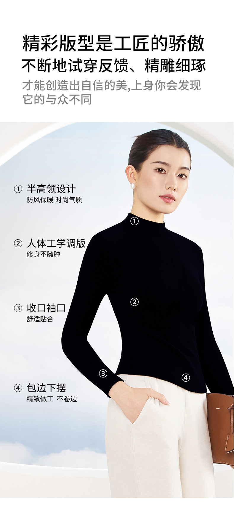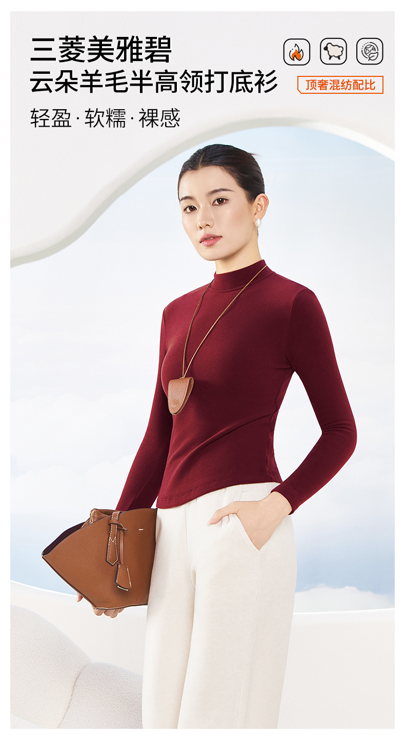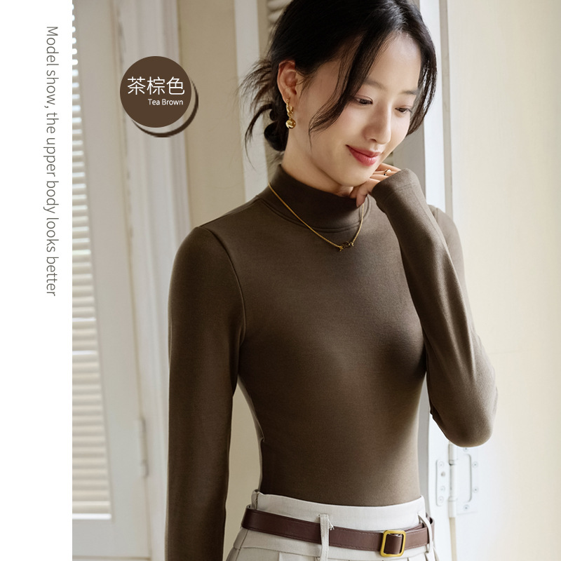 레이셀 하프 터틀넥 여성용 이너웨어 울 플러스 벨벳 두꺼운 가을옷 메야비 A급 항균 긴팔 티셔츠 상의스토어 가기