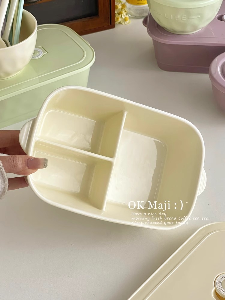여자를위한 Ins 스타일 높은 가치의 도시락 전자레인지 난방 도시락 세라믹 신선한 보관 박스 사무실 근로자 도시락