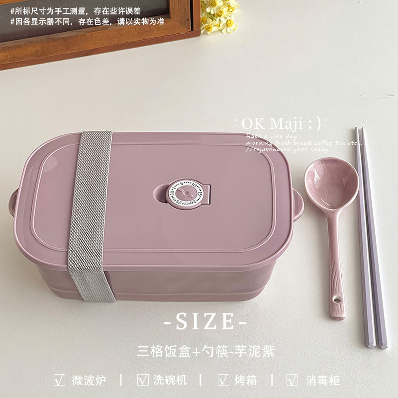 • 3칸 도시락 + 숟가락과 젓가락 - 타로 퍼플