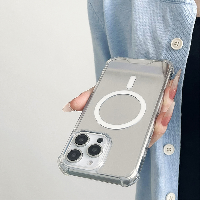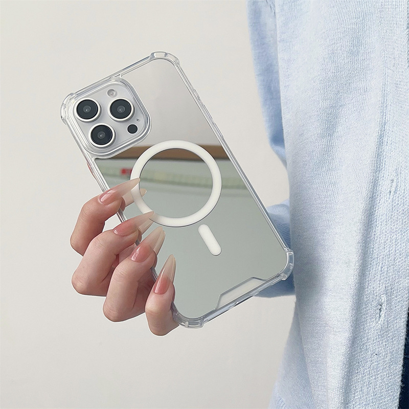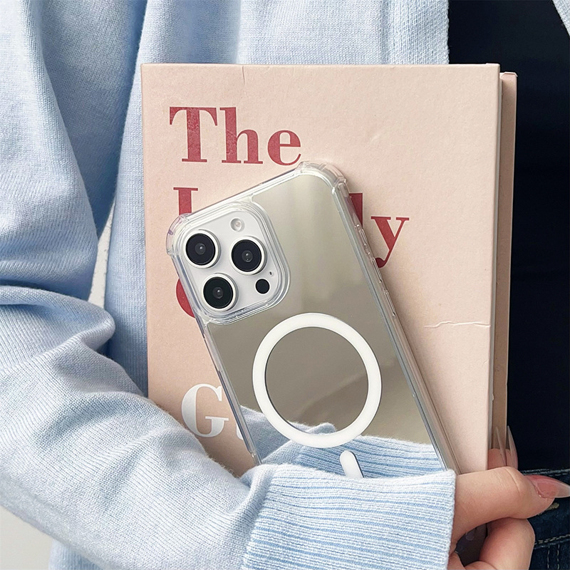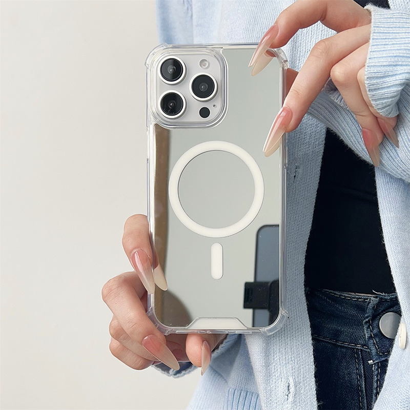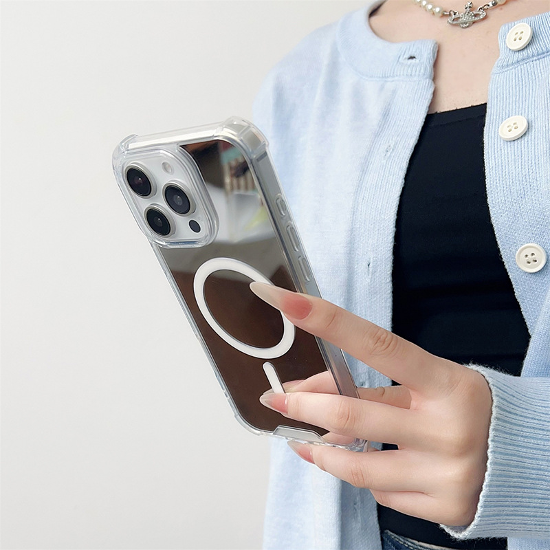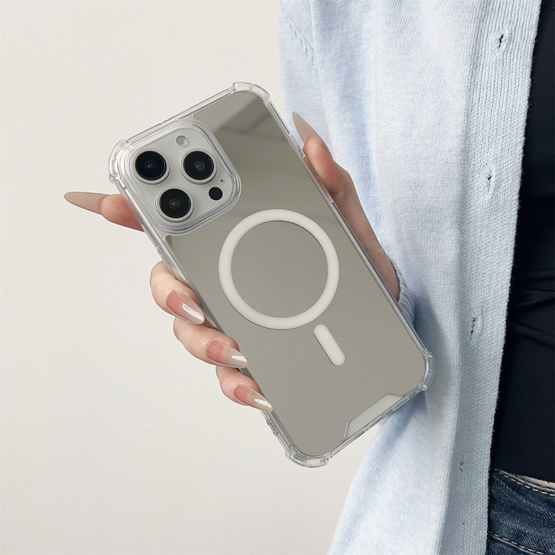 애플 15pro 미러 휴대 전화 케이스 새로운 대형 구멍 iphone15 휴대 전화 케이스 마그네틱 대형 4 코너 드롭 방지