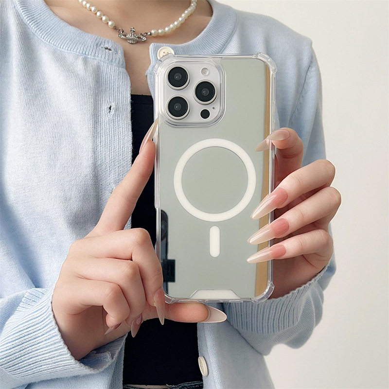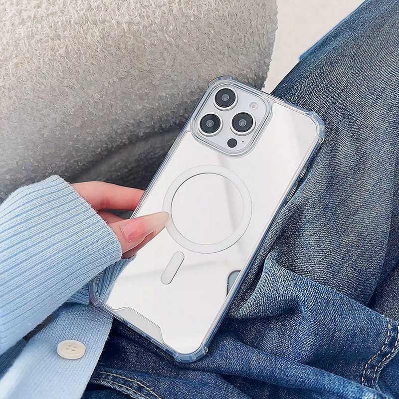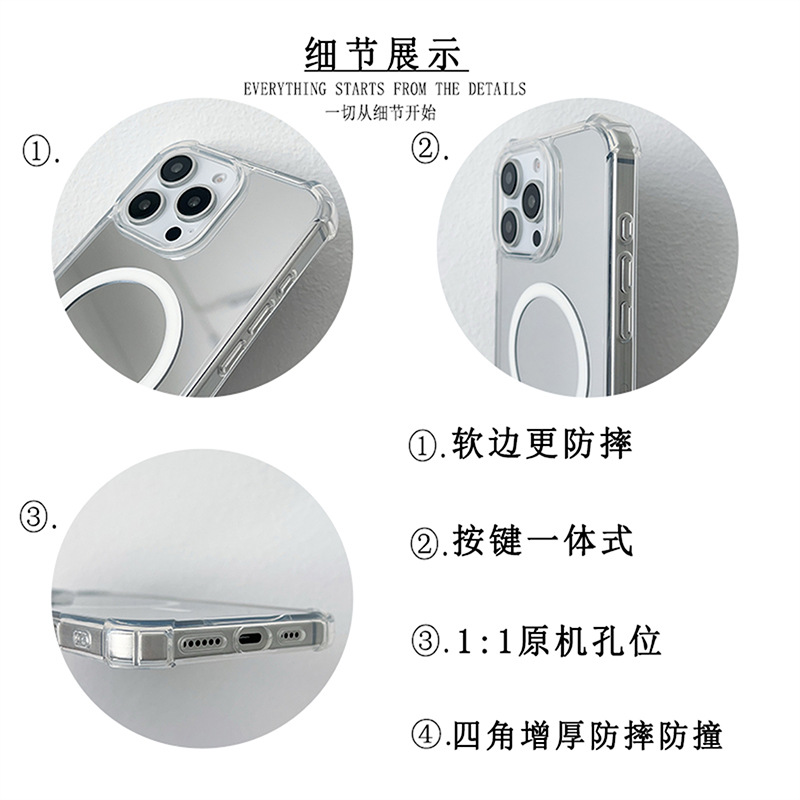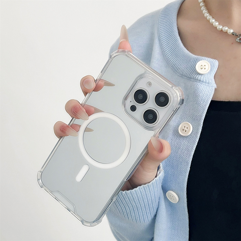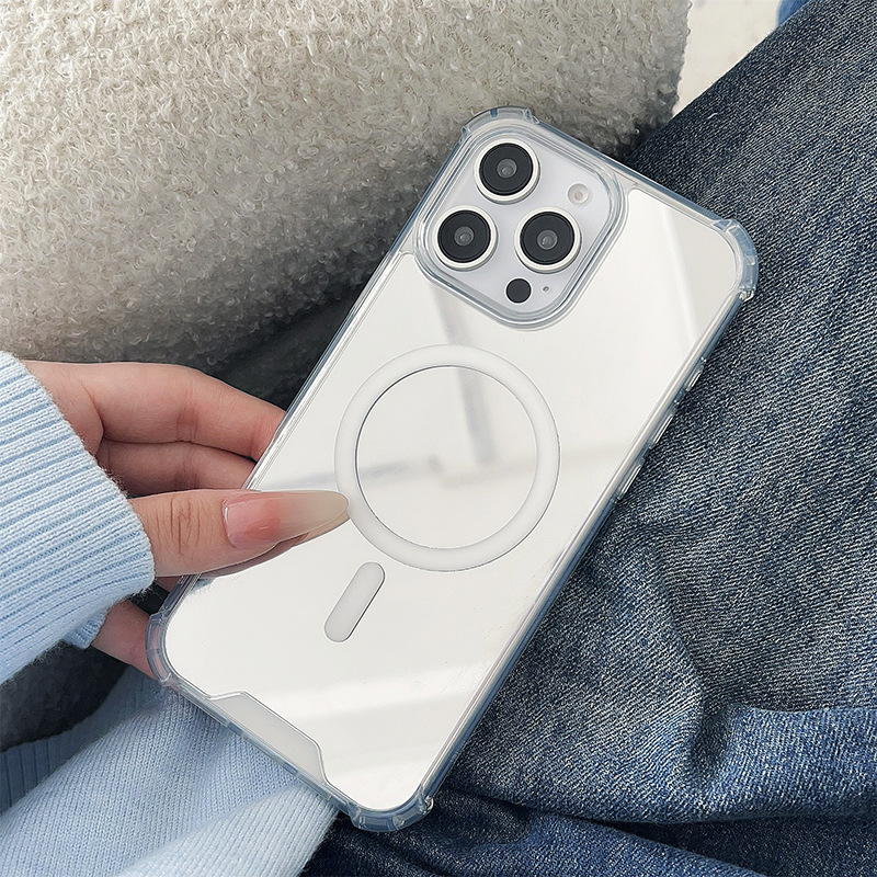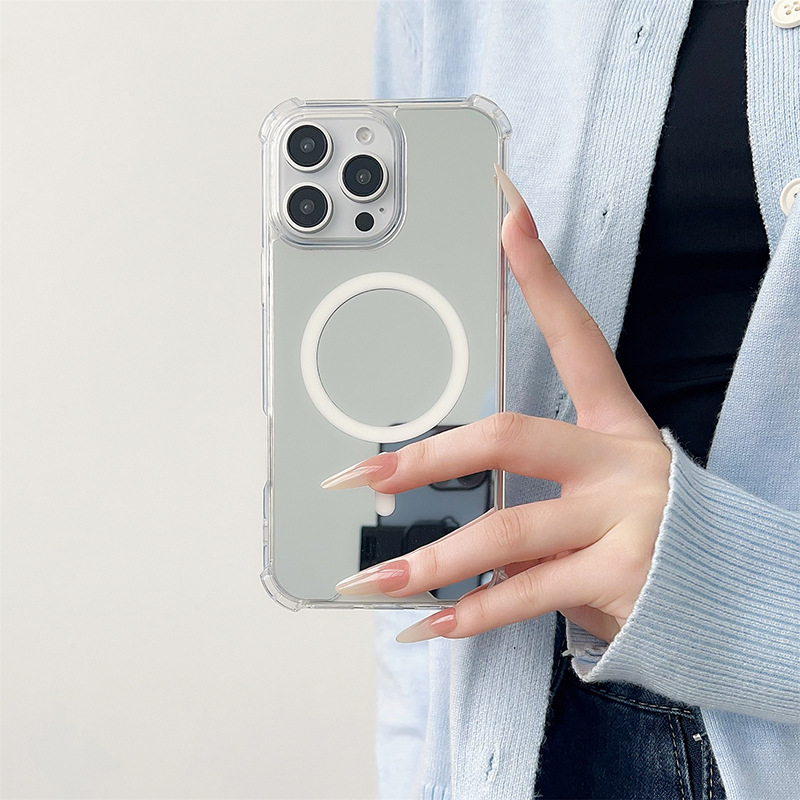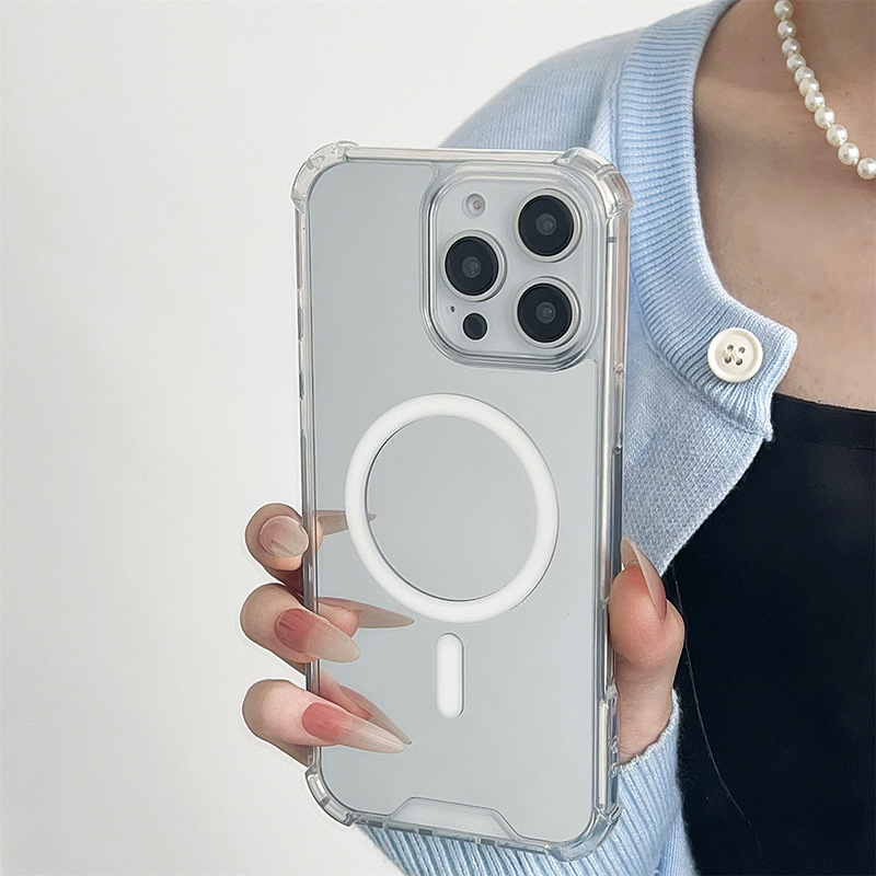 애플 15pro 미러 휴대 전화 케이스 새로운 대형 구멍 iphone15 휴대 전화 케이스 마그네틱 대형 4 코너 드롭 방지