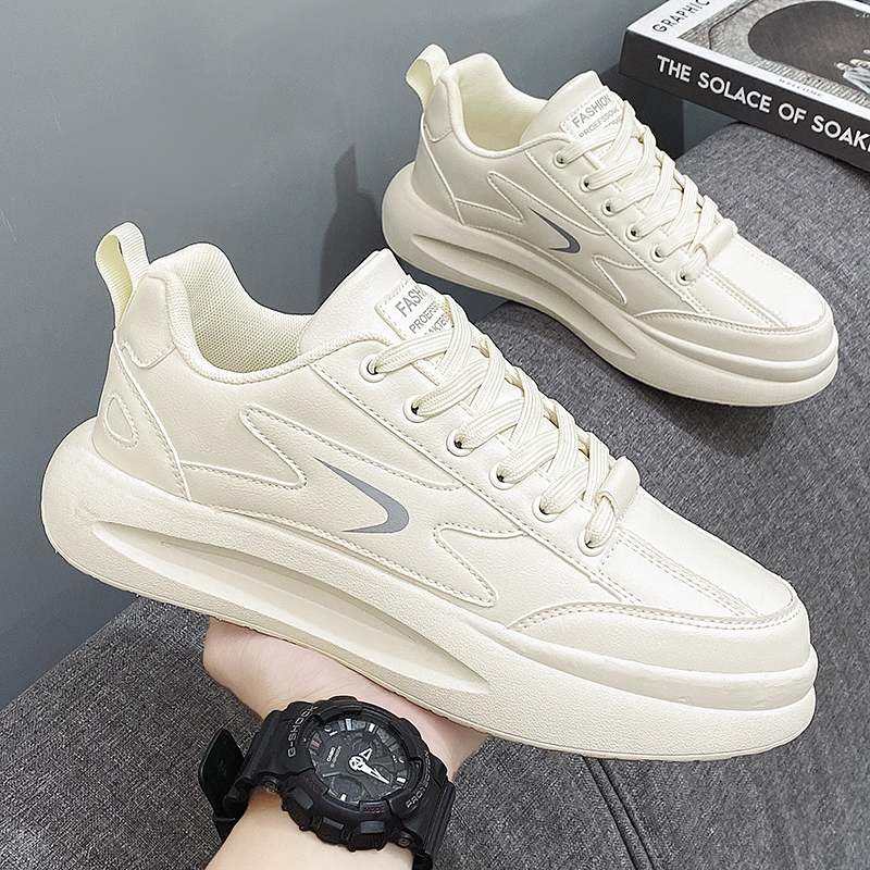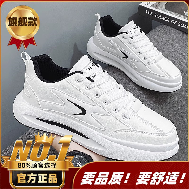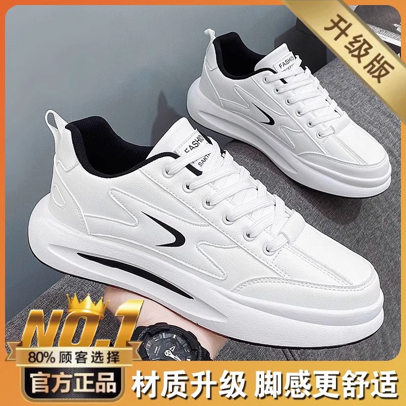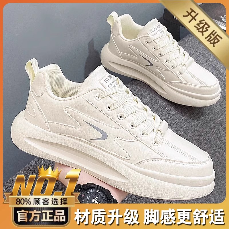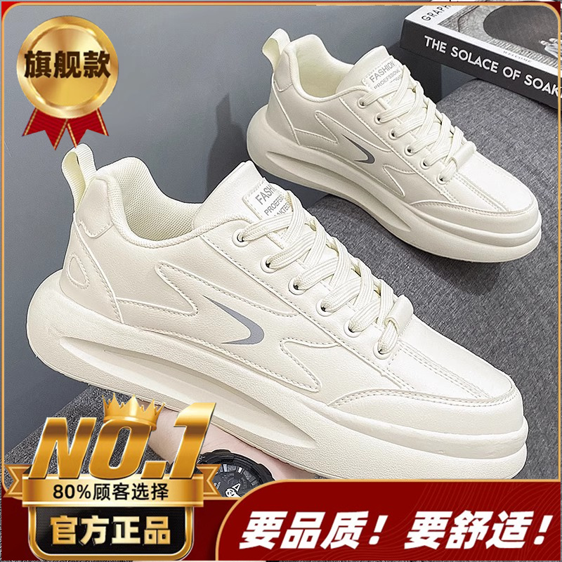 Putian 남성용 신발 가을 2024 년 새로운 올 매치 스포츠 가죽 캐주얼 보드 신발 남성용 두꺼운 밑창 작은 흰색 트렌디 신발 증가스토어 가기