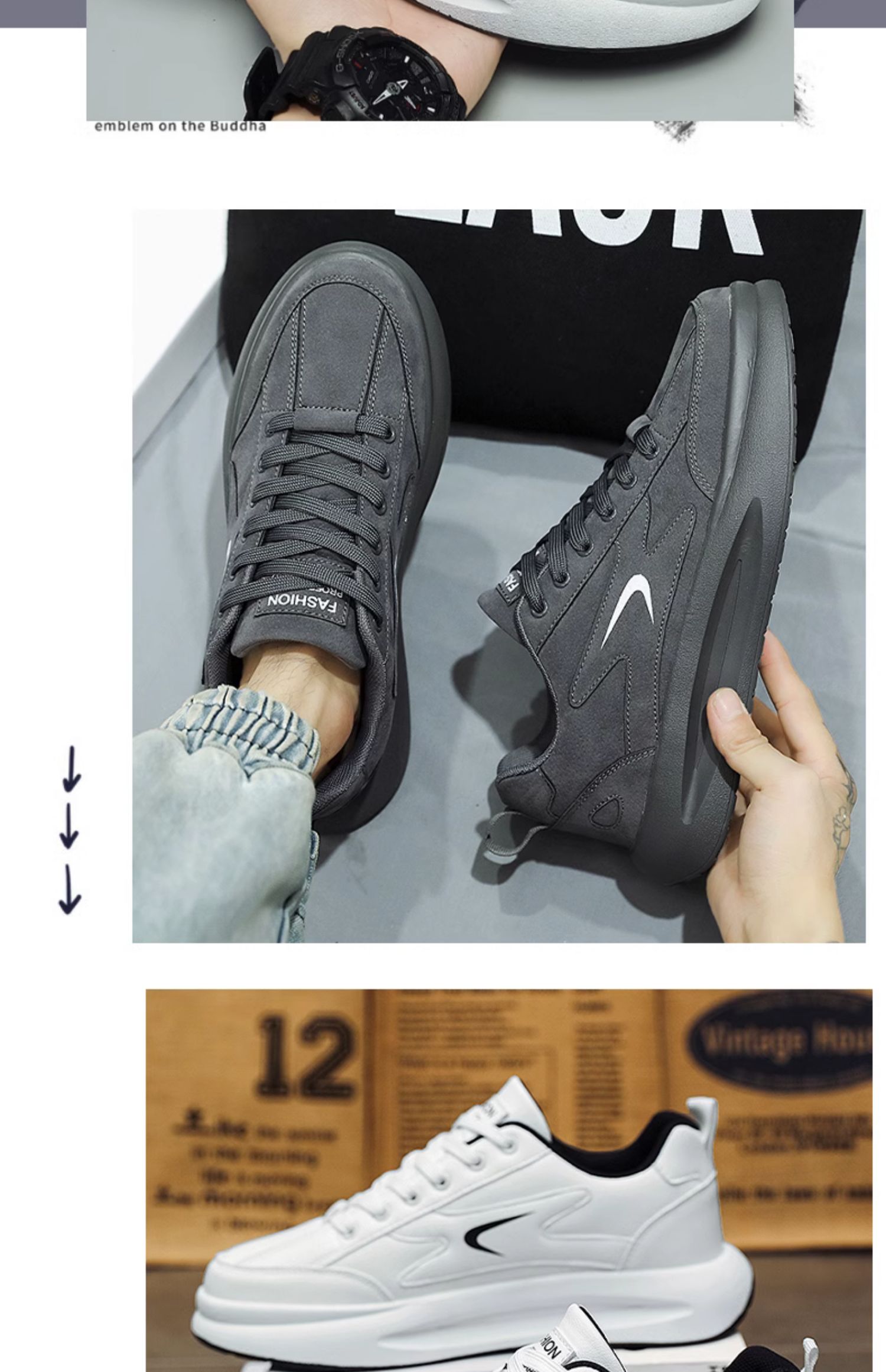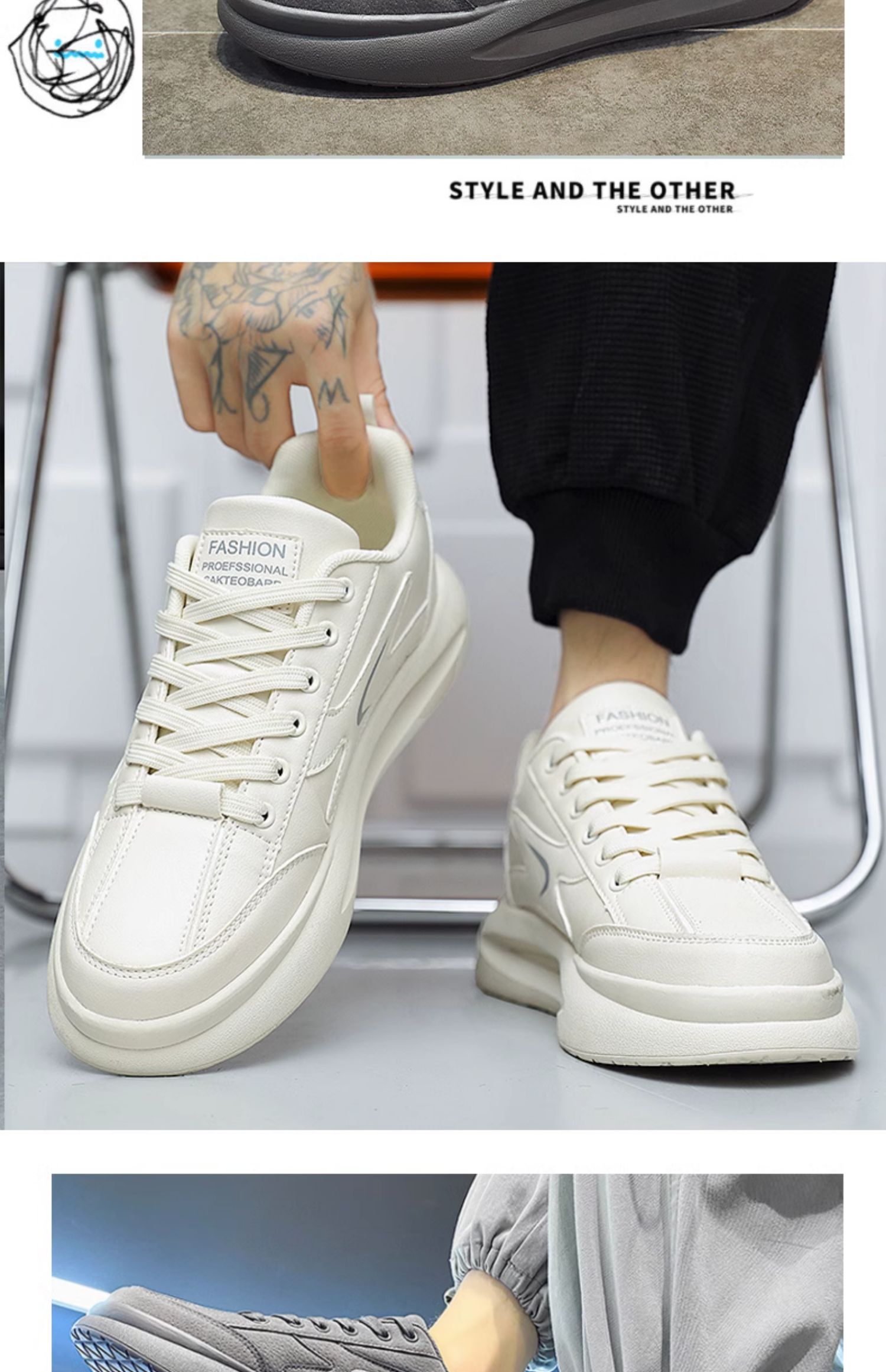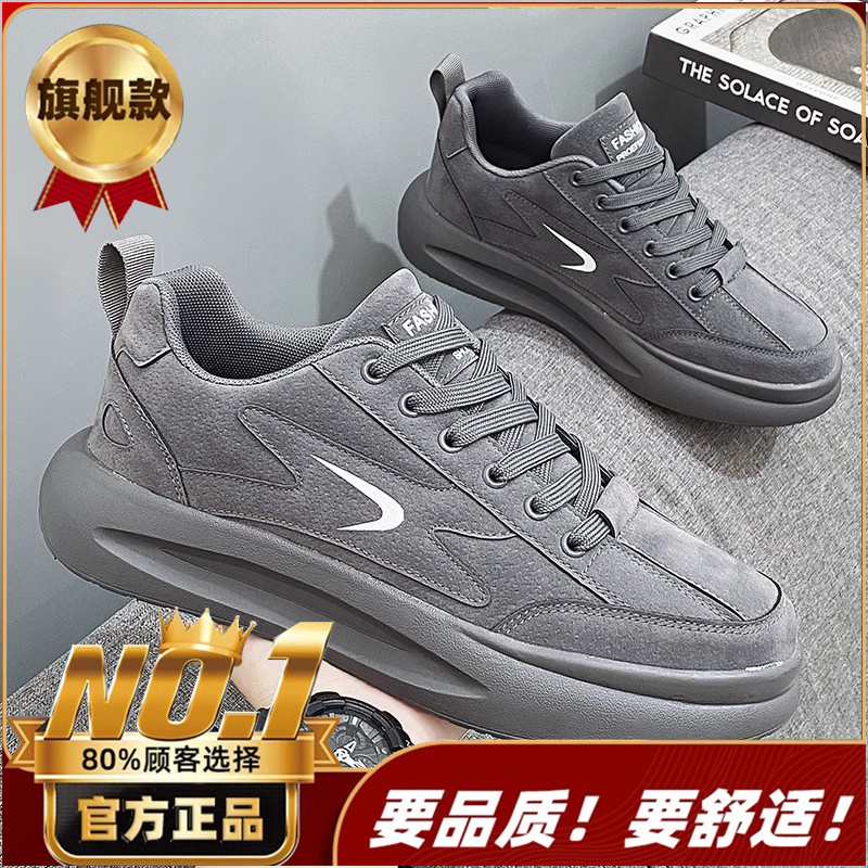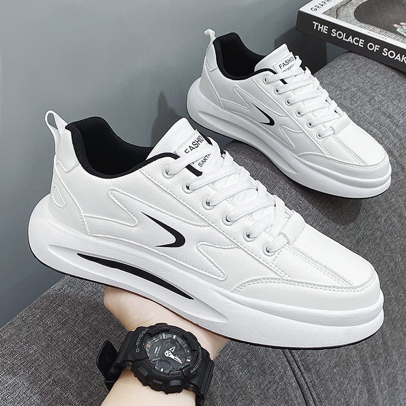 Putian 남성용 신발 가을 2024 년 새로운 올 매치 스포츠 가죽 캐주얼 보드 신발 남성용 두꺼운 밑창 작은 흰색 트렌디 신발 증가스토어 가기