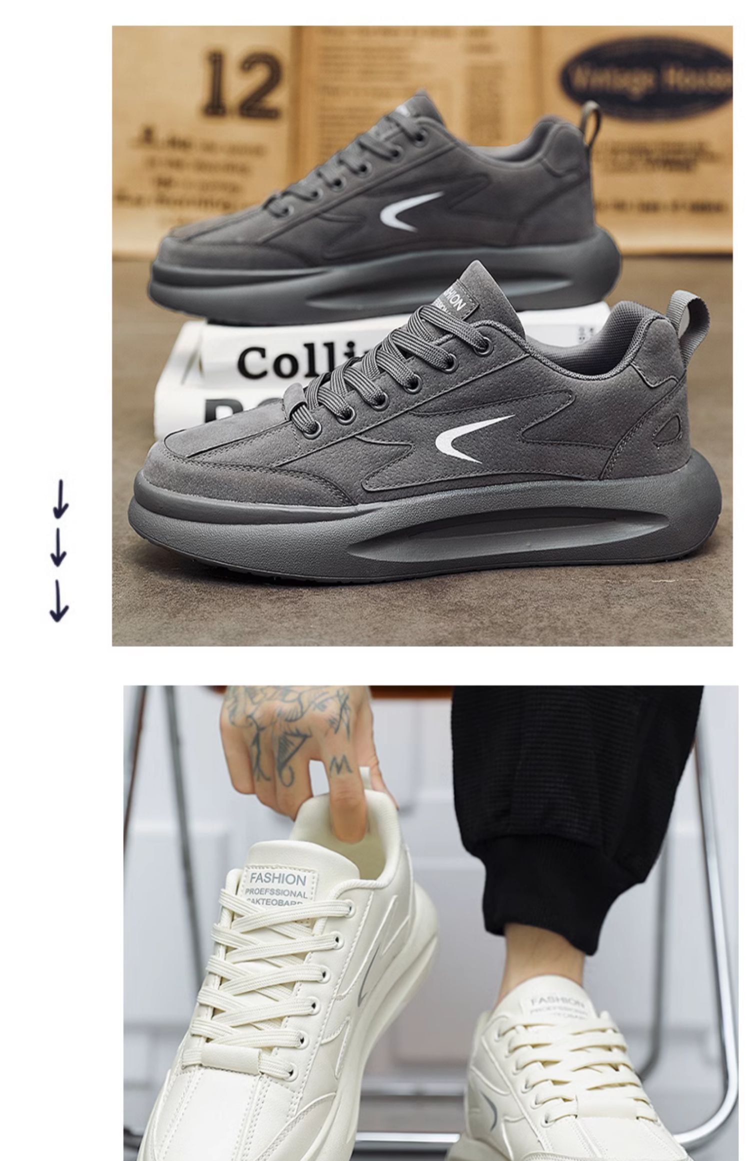 Putian 남성용 신발 가을 2024 년 새로운 올 매치 스포츠 가죽 캐주얼 보드 신발 남성용 두꺼운 밑창 작은 흰색 트렌디 신발 증가