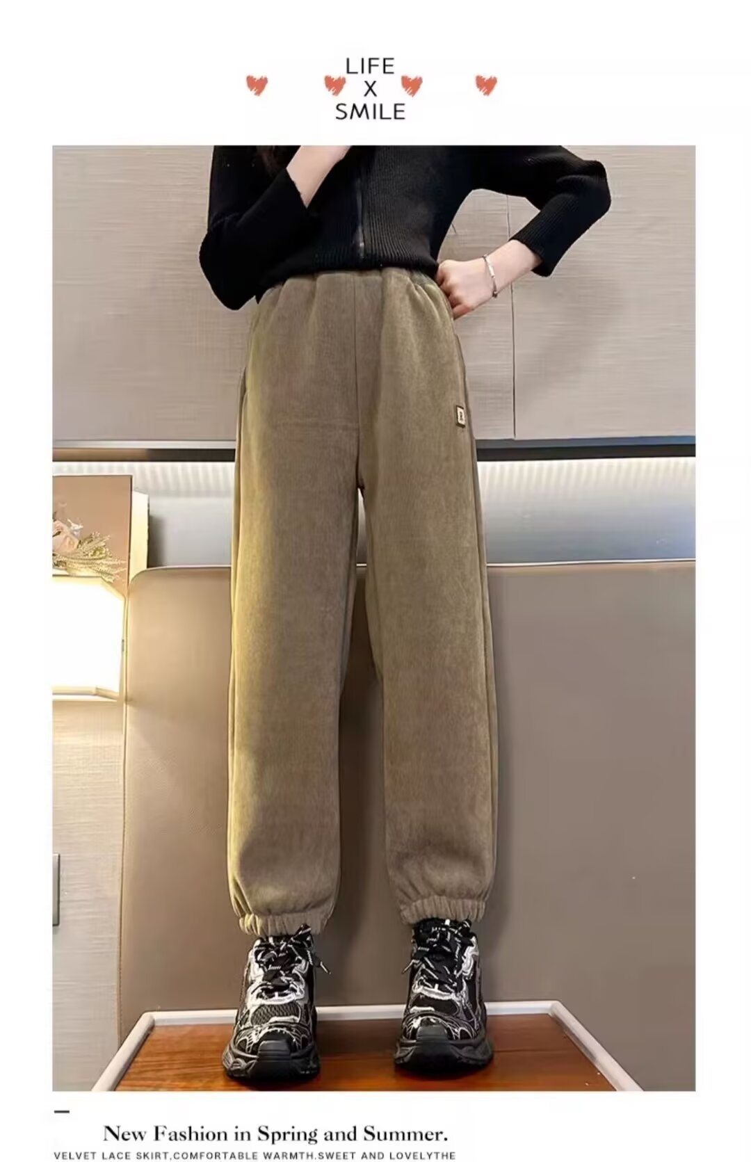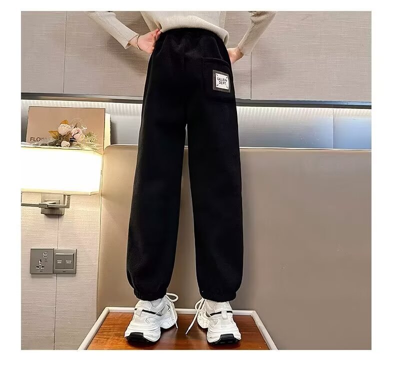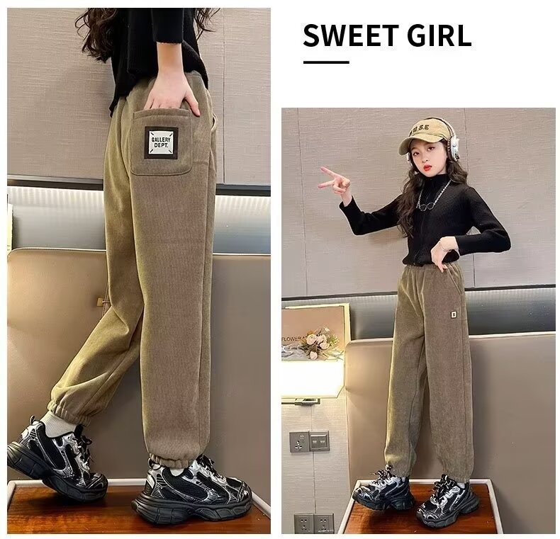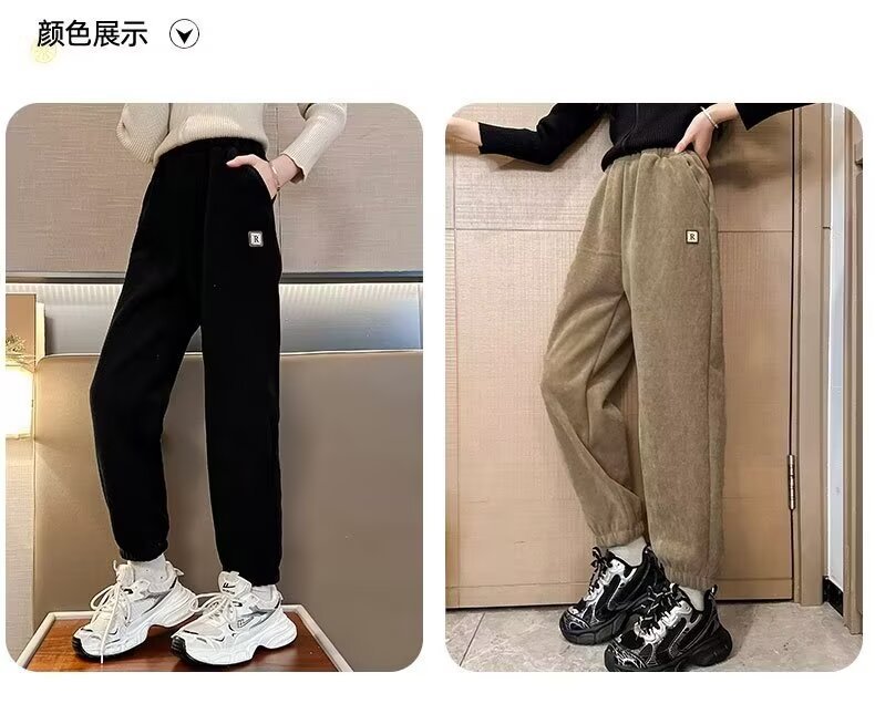 2024 년 봄과 가을 소녀 코듀로이 큰 아이들 한국 바지 새로운 높은 허리 두꺼운 여자 넓은 다리 바지스토어 가기
