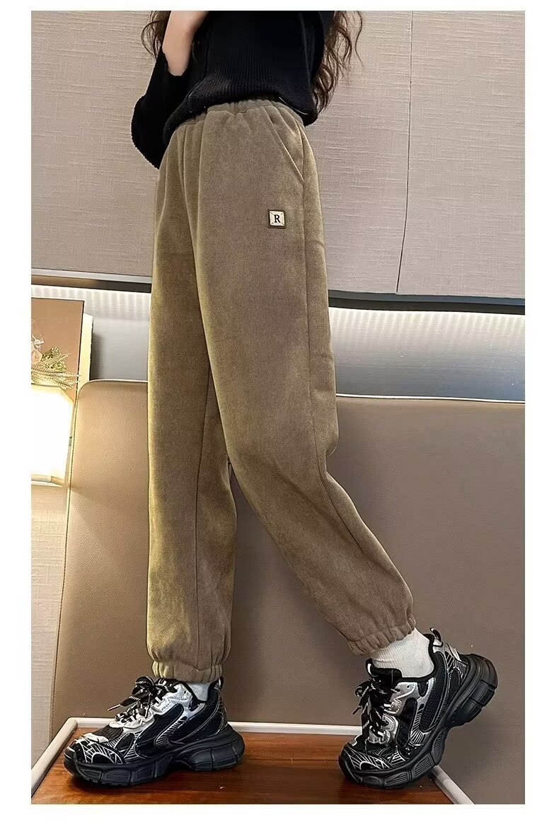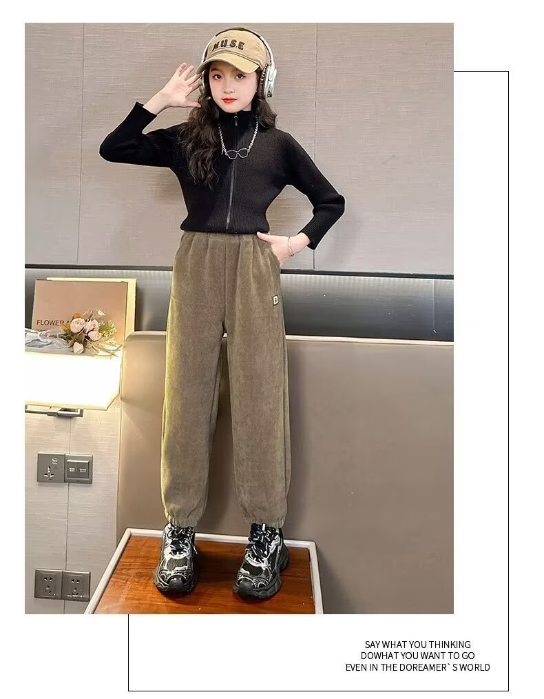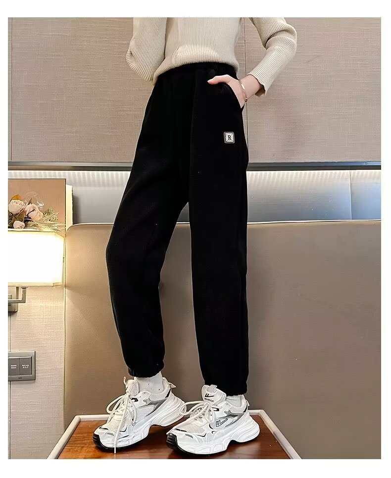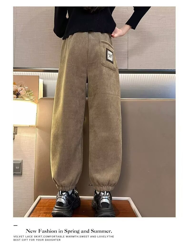 2024 년 봄과 가을 소녀 코듀로이 큰 아이들 한국 바지 새로운 높은 허리 두꺼운 여자 넓은 다리 바지