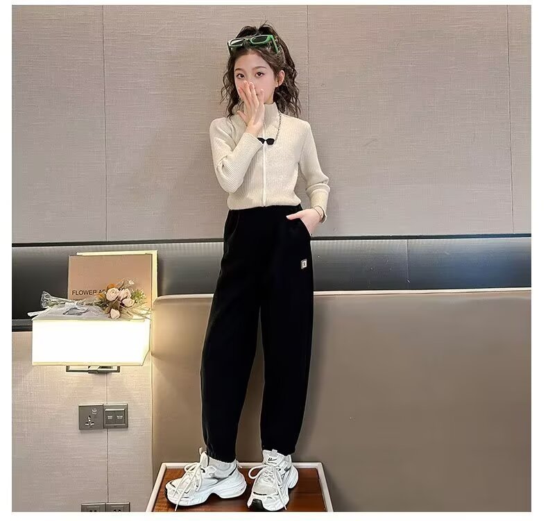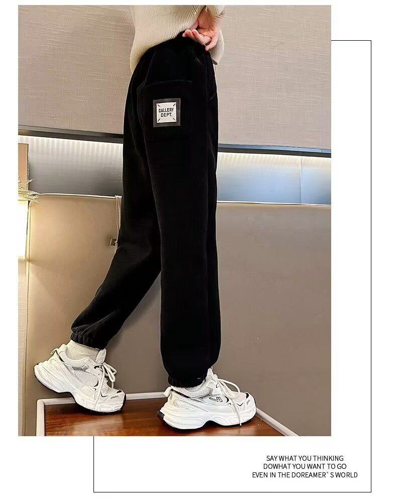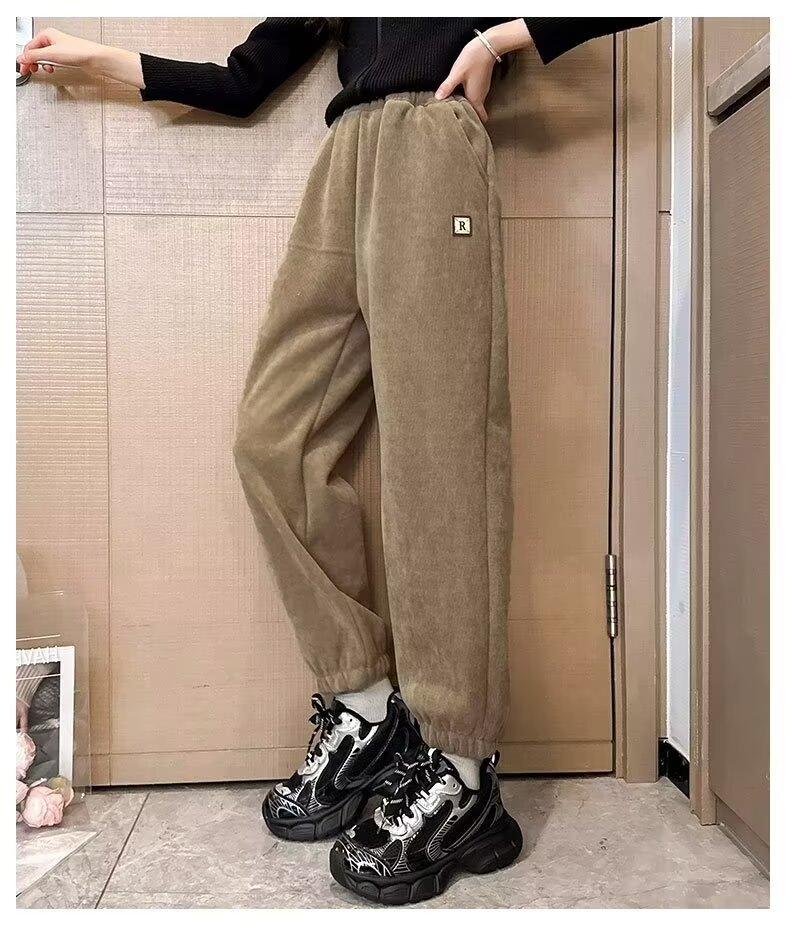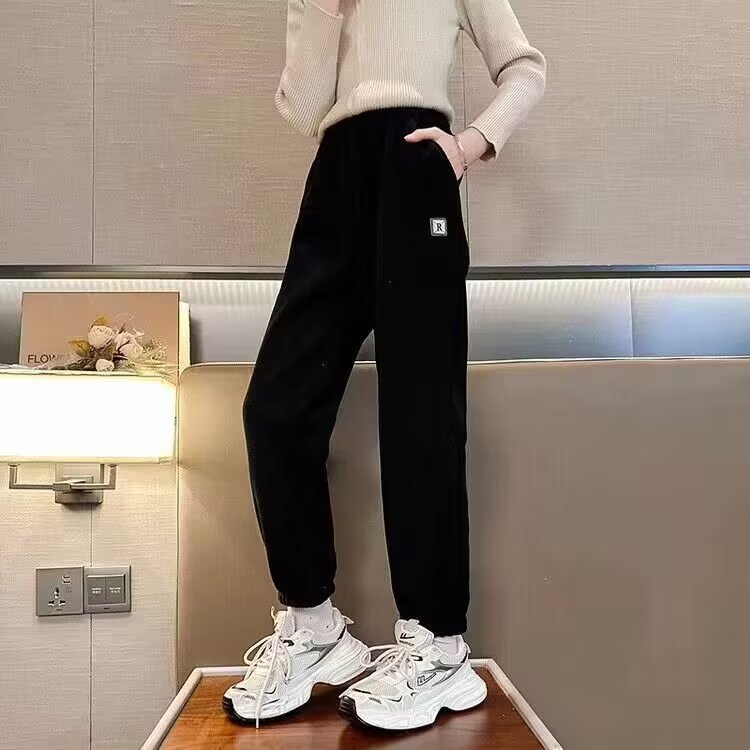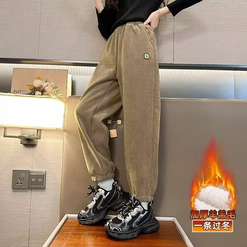 2024 년 봄과 가을 소녀 코듀로이 큰 아이들 한국 바지 새로운 높은 허리 두꺼운 여자 넓은 다리 바지