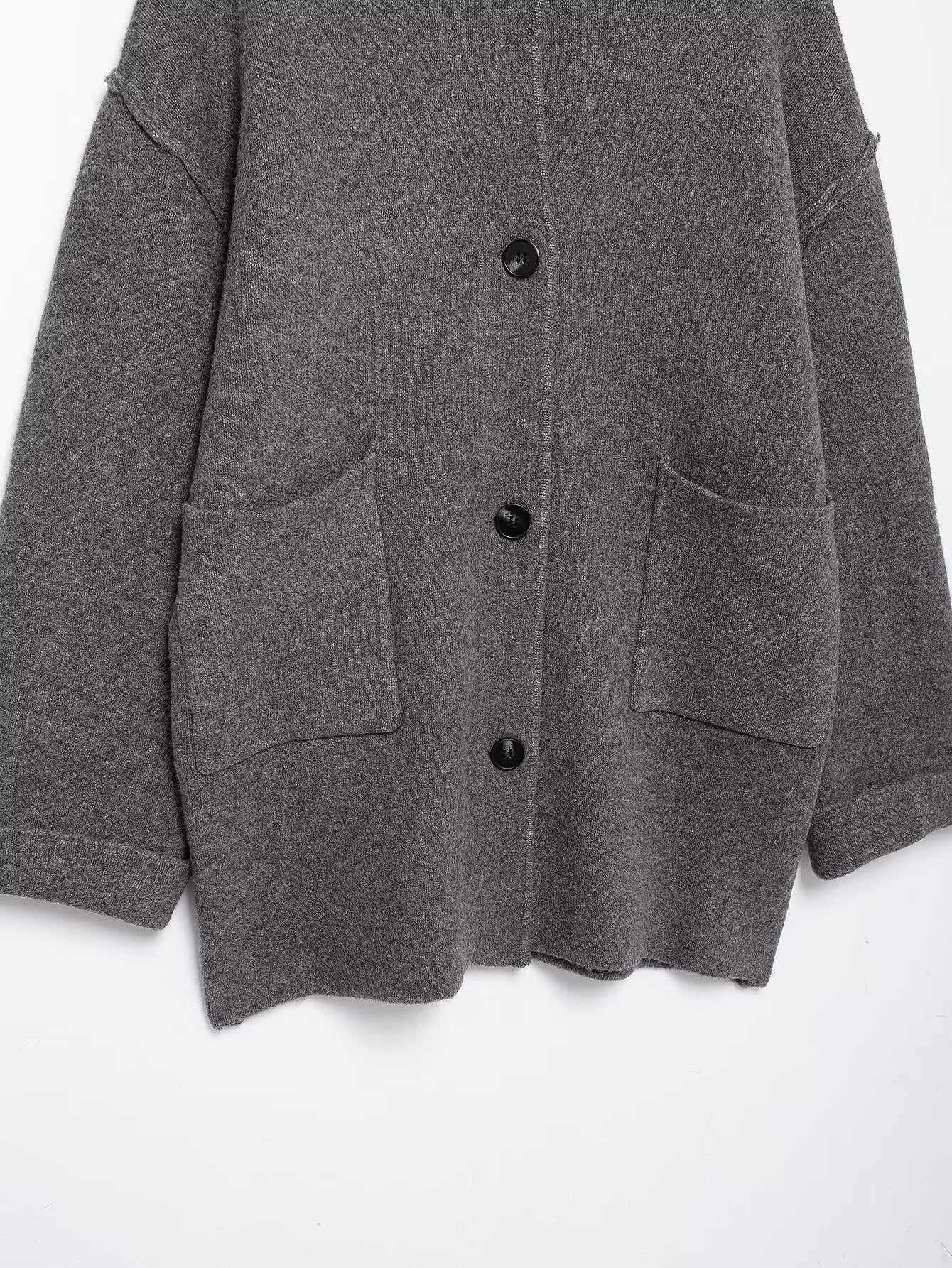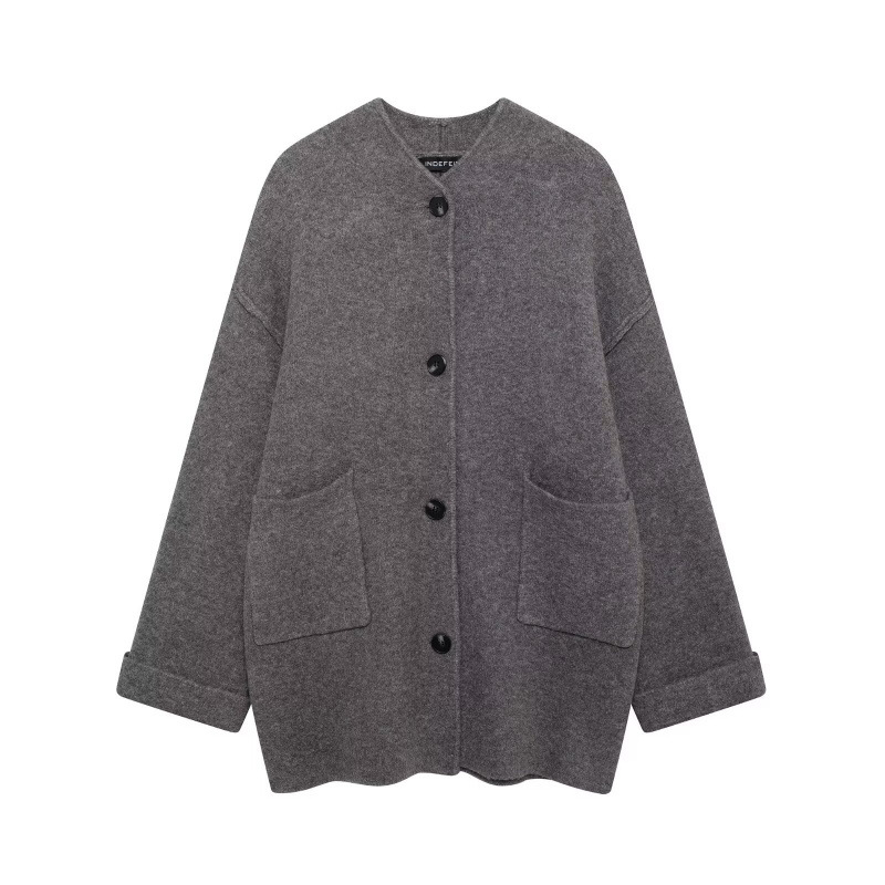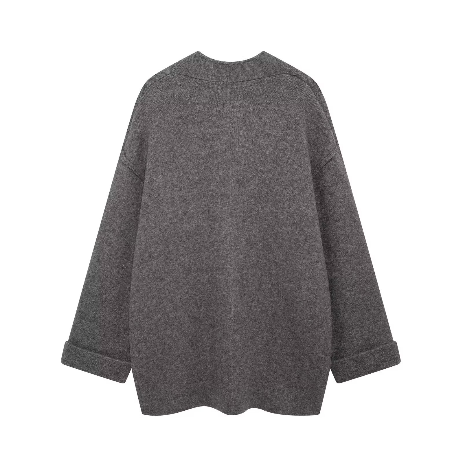 가을 2024 새로운 여성 의류 유럽과 미국 스타일 패션 간단한 페이스트 포켓 니트 코트 5755125