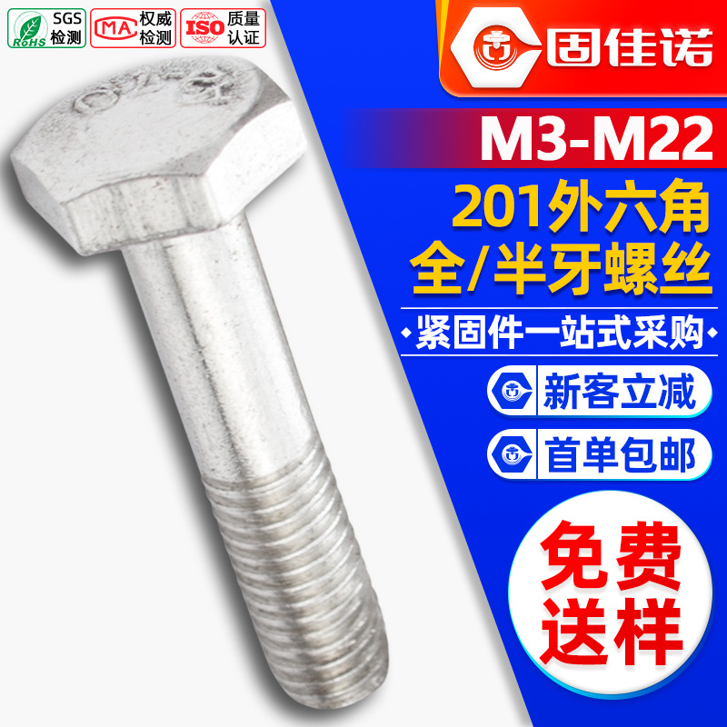 201 스테인레스 스틸 외부 육각형 볼트 전체 치아 외부 육각형 나사 절반 치아 육각형 헤드 표준 M4/M5/M6/M8스토어 가기