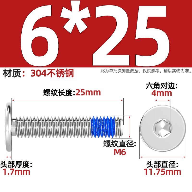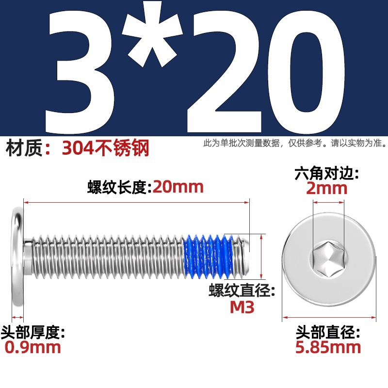 304 스테인레스 스틸 얇은 헤드 플랫 헤드 CM 육각형 소켓 안티 드롭 스크류 분배 안티 느슨한 접착 스크류 M2-M12