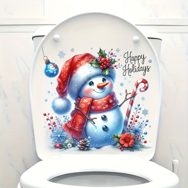 국경 간 크리스마스 화장실 스티커 눈사람 패턴 쉬운 스틱 쉬운 눈물 자동 접착 욕실/변기 장식