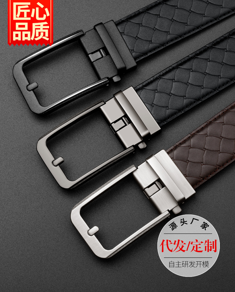 2024 남성 비즈니스 벨트 핀 버클 자동 버클 벨트 남성 고급 센스 탑 레이어 Cowhide 가죽 벨트 도매스토어 가기