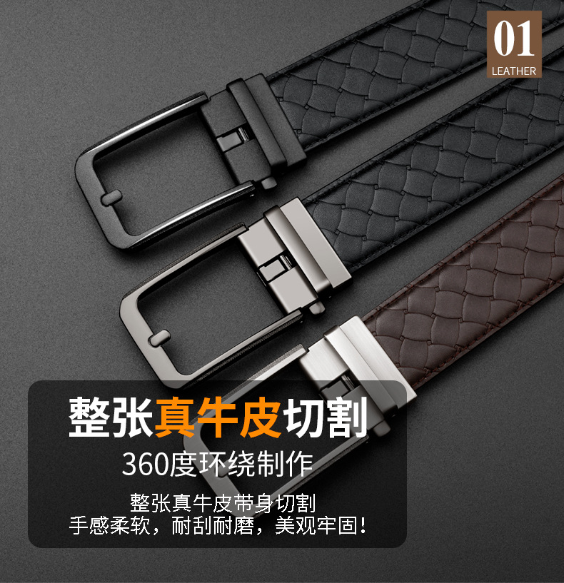 2024 남성 비즈니스 벨트 핀 버클 자동 버클 벨트 남성 고급 센스 탑 레이어 Cowhide 가죽 벨트 도매