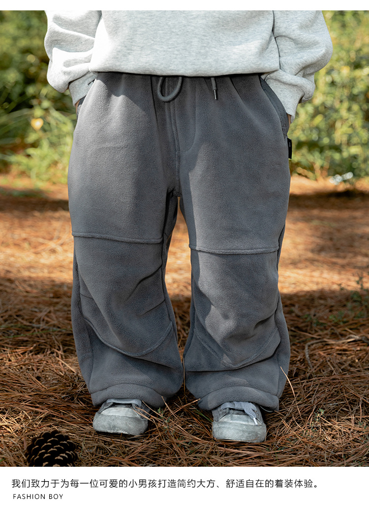 소년의 기모 바지 2024 겨울 새로운 양면 올리 양털 바지 아기의 서양식 따뜻한 캐주얼 바지