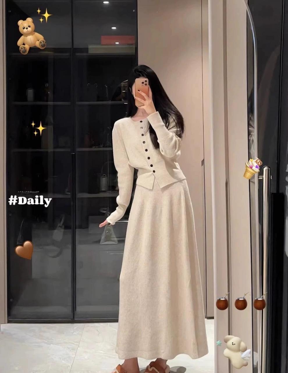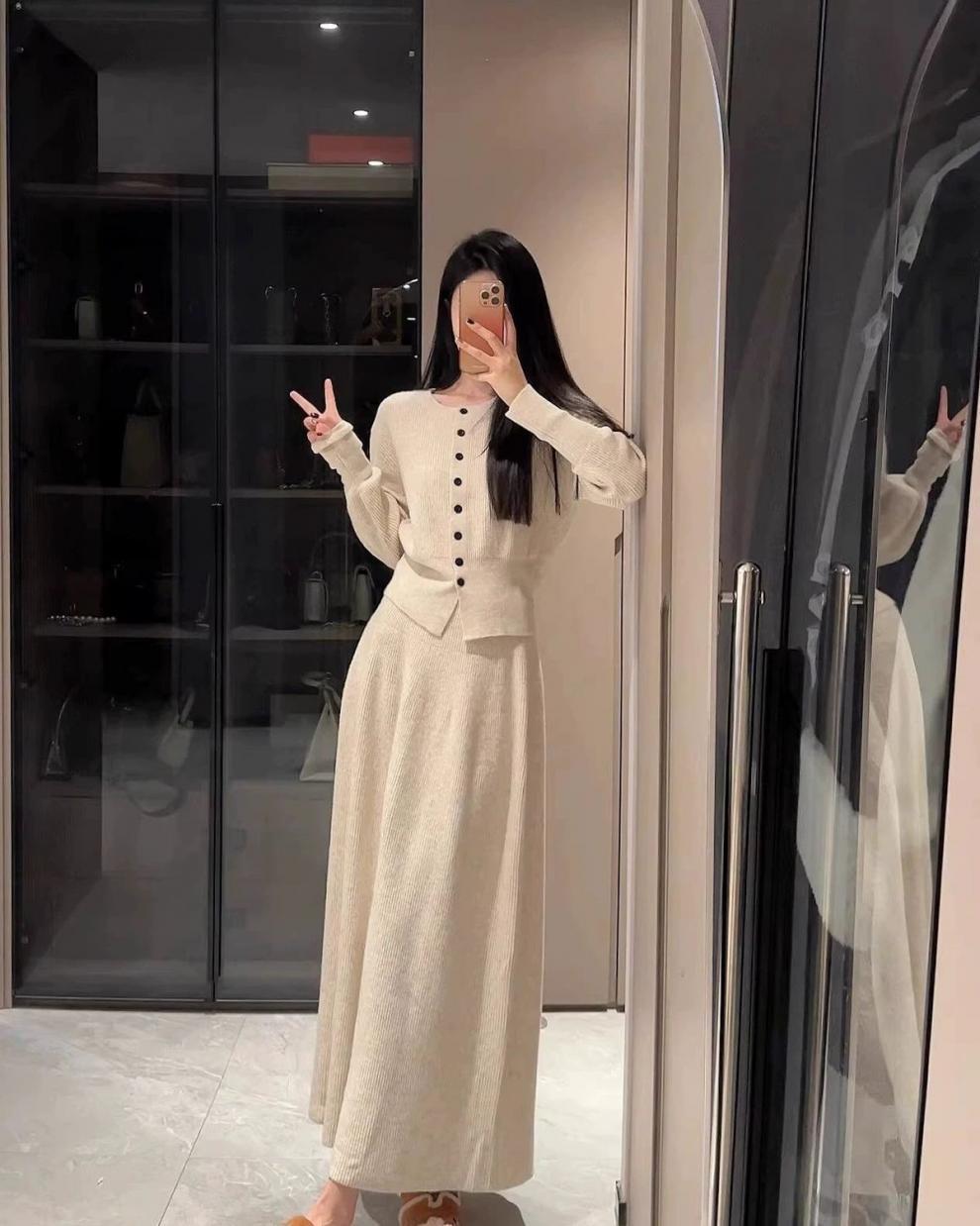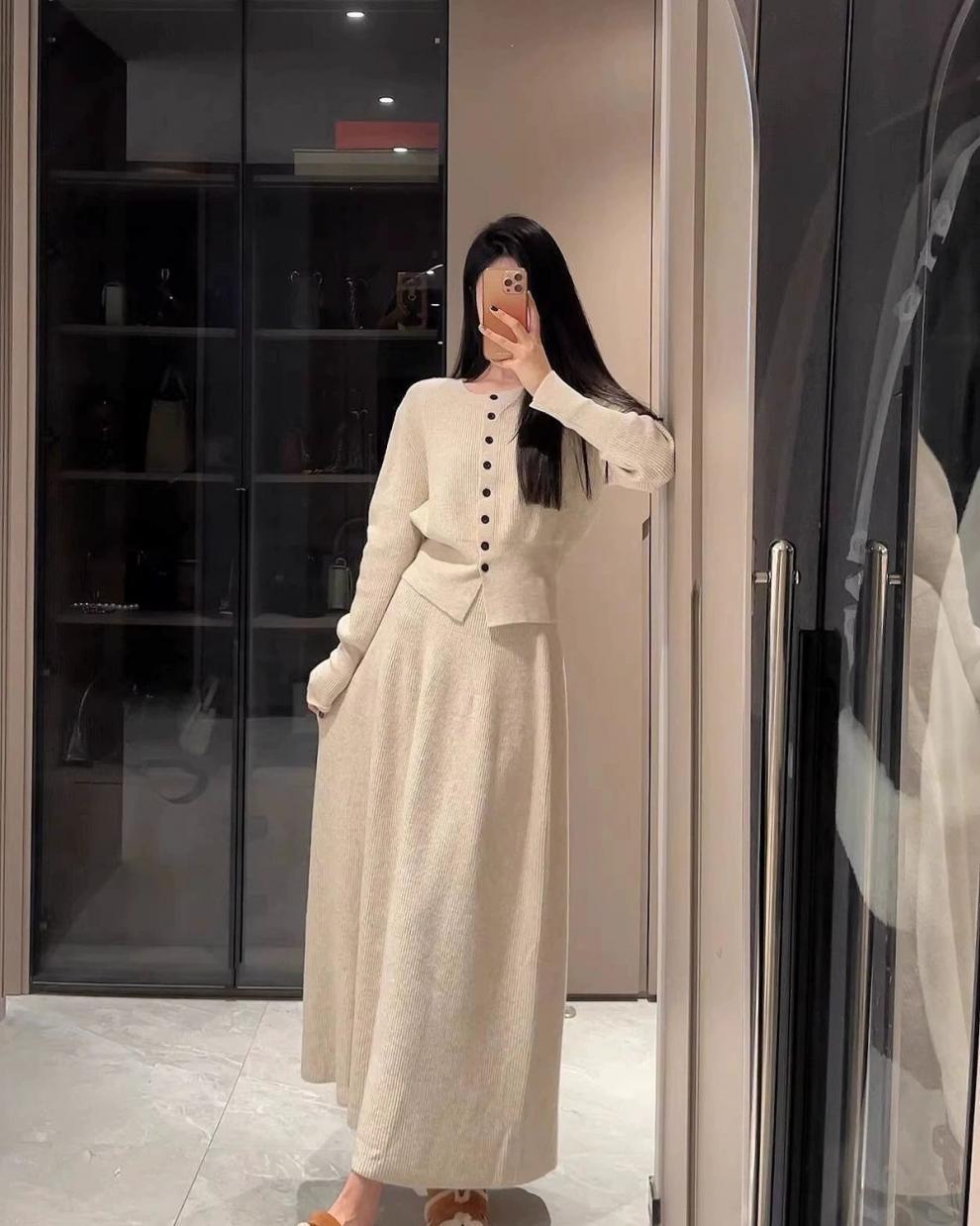 한국 하이 엔드 니트 원피스 여성 2024 가을과 겨울 새로운 패션 기질 원피스 가을은 세트를 착용스토어 가기