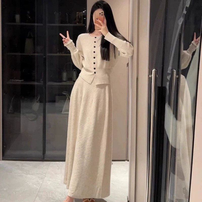 한국 하이 엔드 니트 원피스 여성 2024 가을과 겨울 새로운 패션 기질 원피스 가을은 세트를 착용
