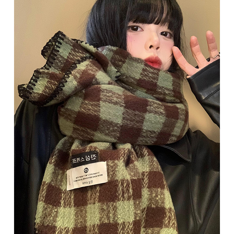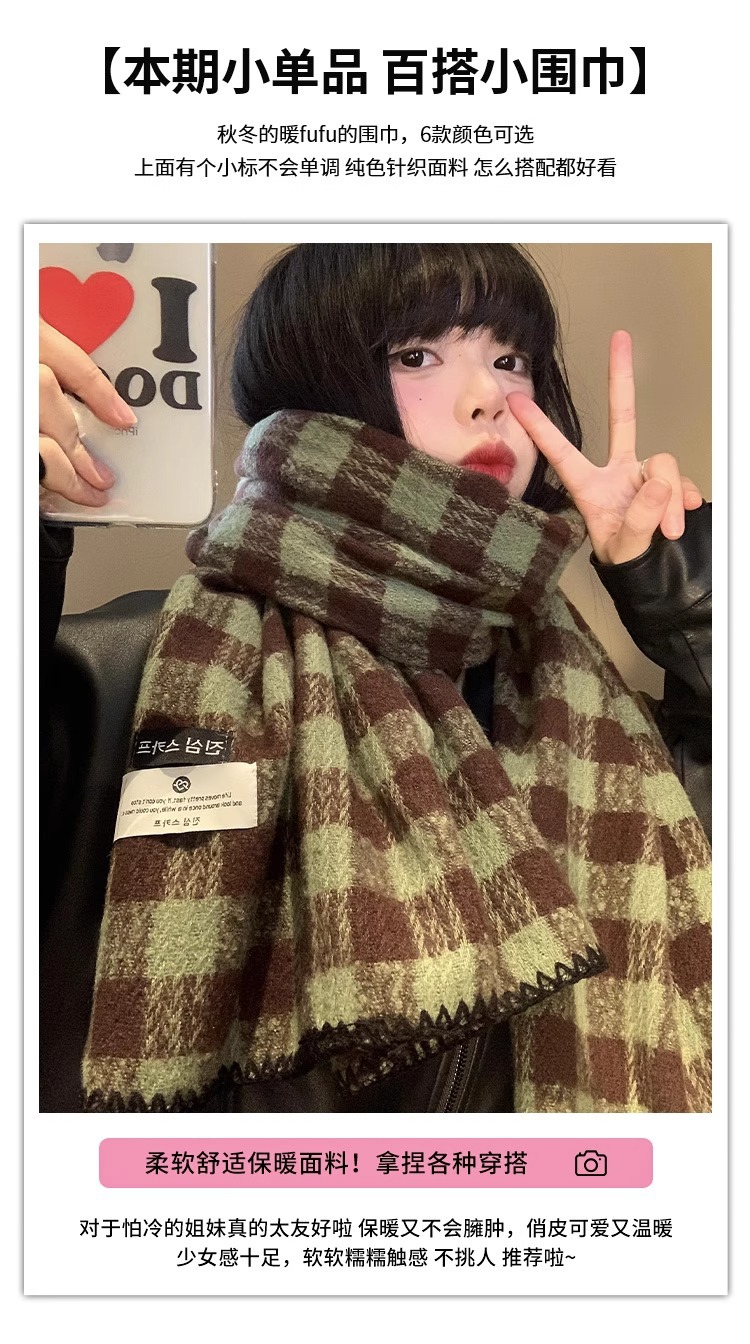 스카프 겨울 여자 한국 스타일 레트로 그린 올 매치 니트 락 엣지 스카프 일본식 분위기 따뜻한 방한 목도리스토어 가기