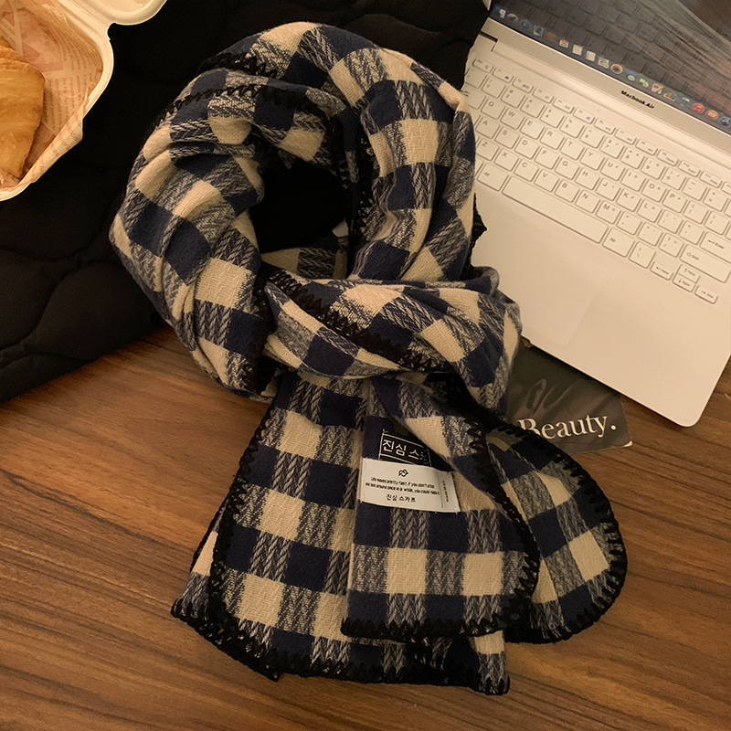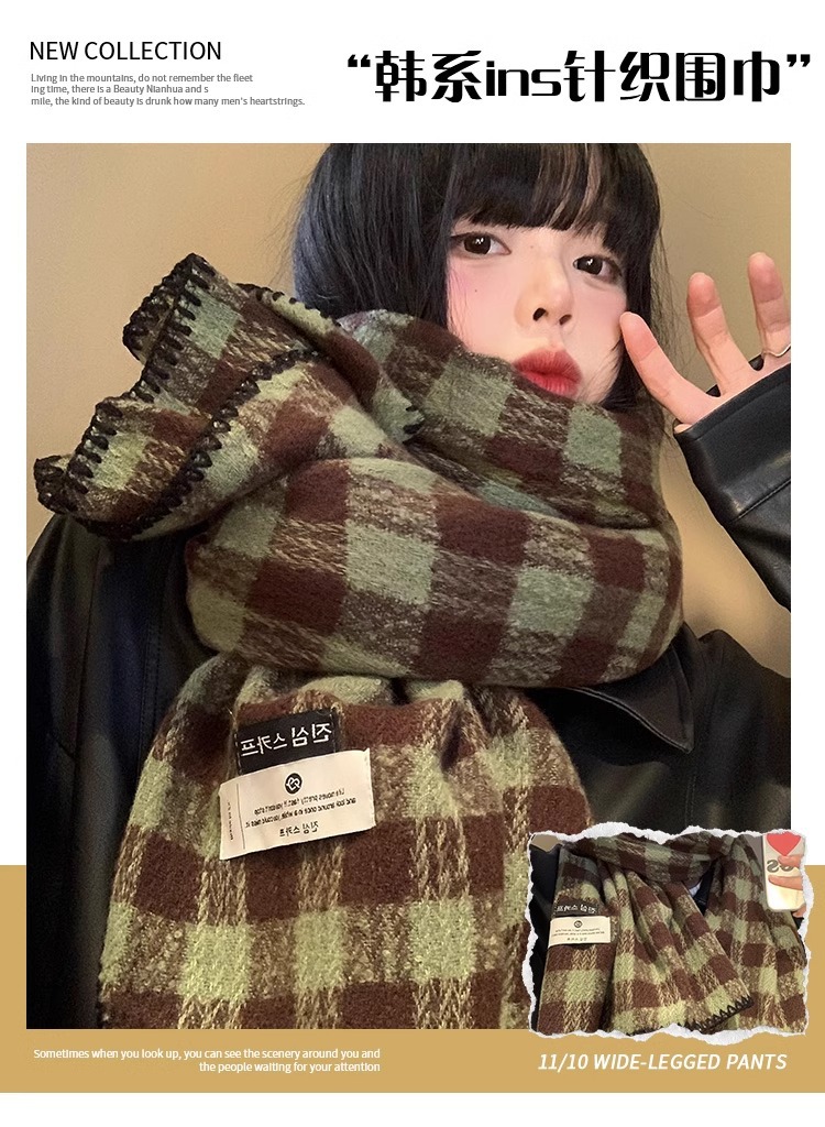 스카프 겨울 여자 한국 스타일 레트로 그린 올 매치 니트 락 엣지 스카프 일본식 분위기 따뜻한 방한 목도리