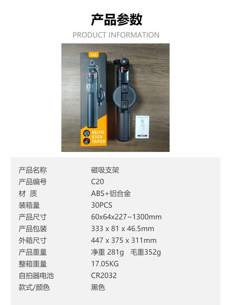 마그네틱 휴대 전화 셀카 스틱 C20 블루투스 원격 제어 통합 삼각대 여행 휴대용 라이브 촬영 유물