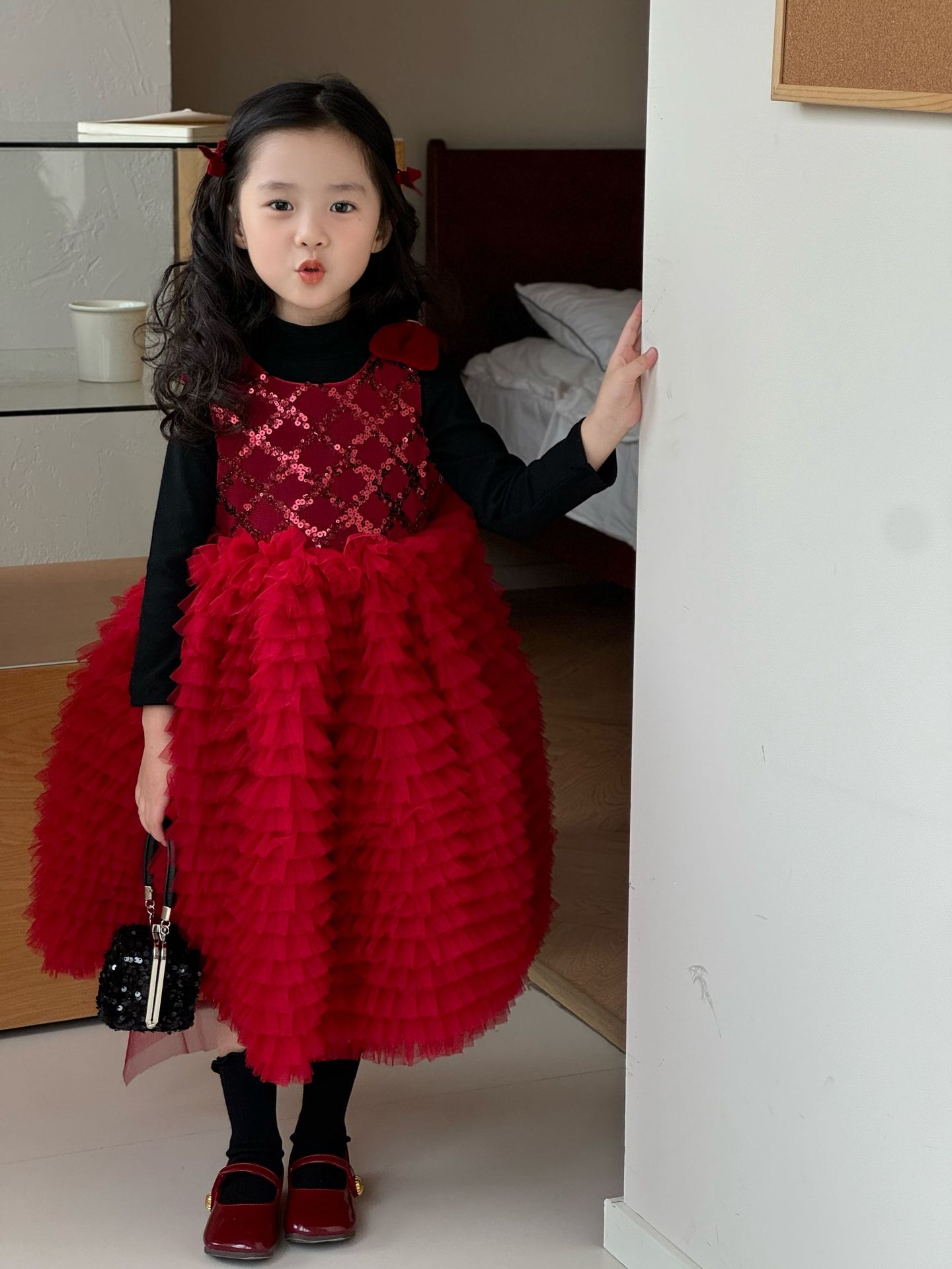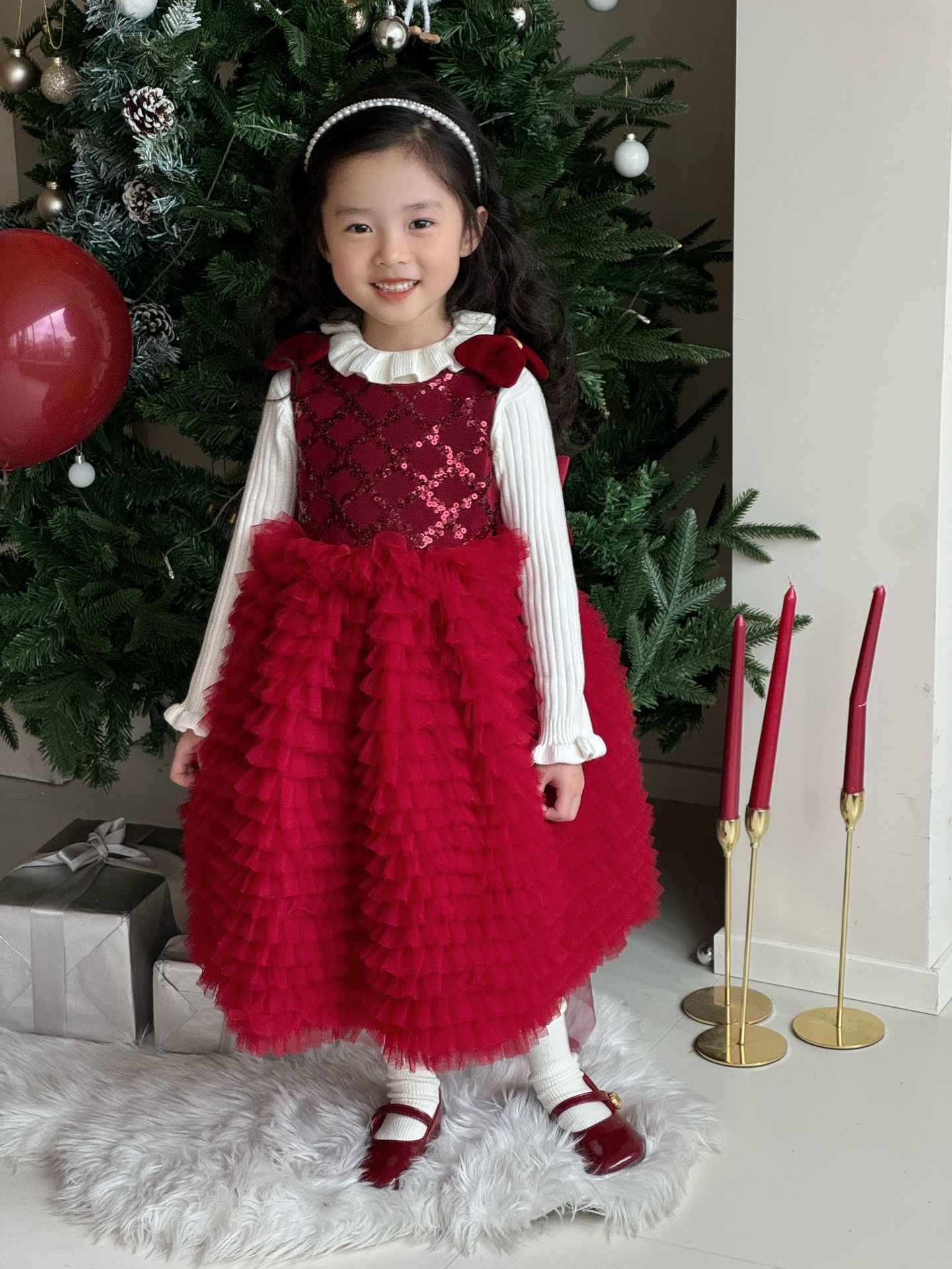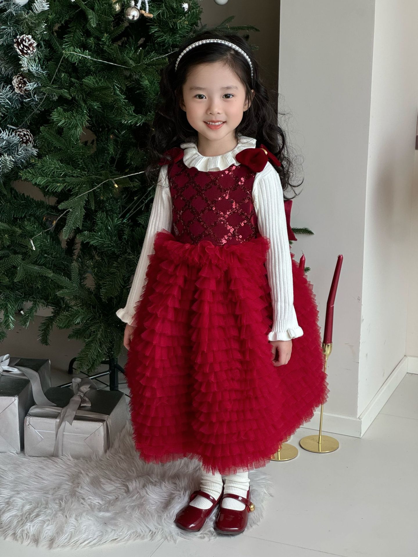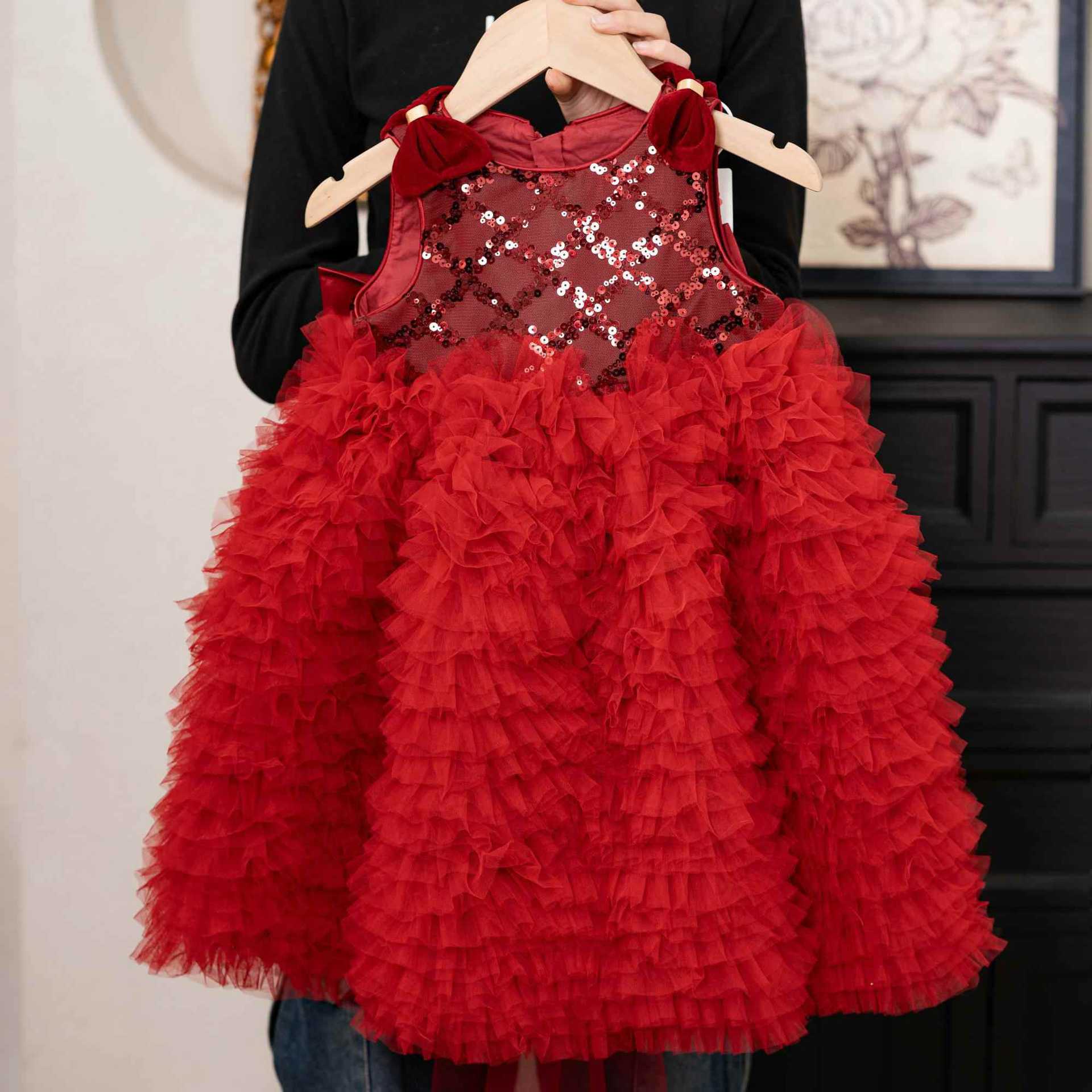 24 새로운 어린 소녀 붉은 새해 원피스 판초 원사 생일 케이크 원피스 소녀 크리스마스 활 원피스스토어 가기