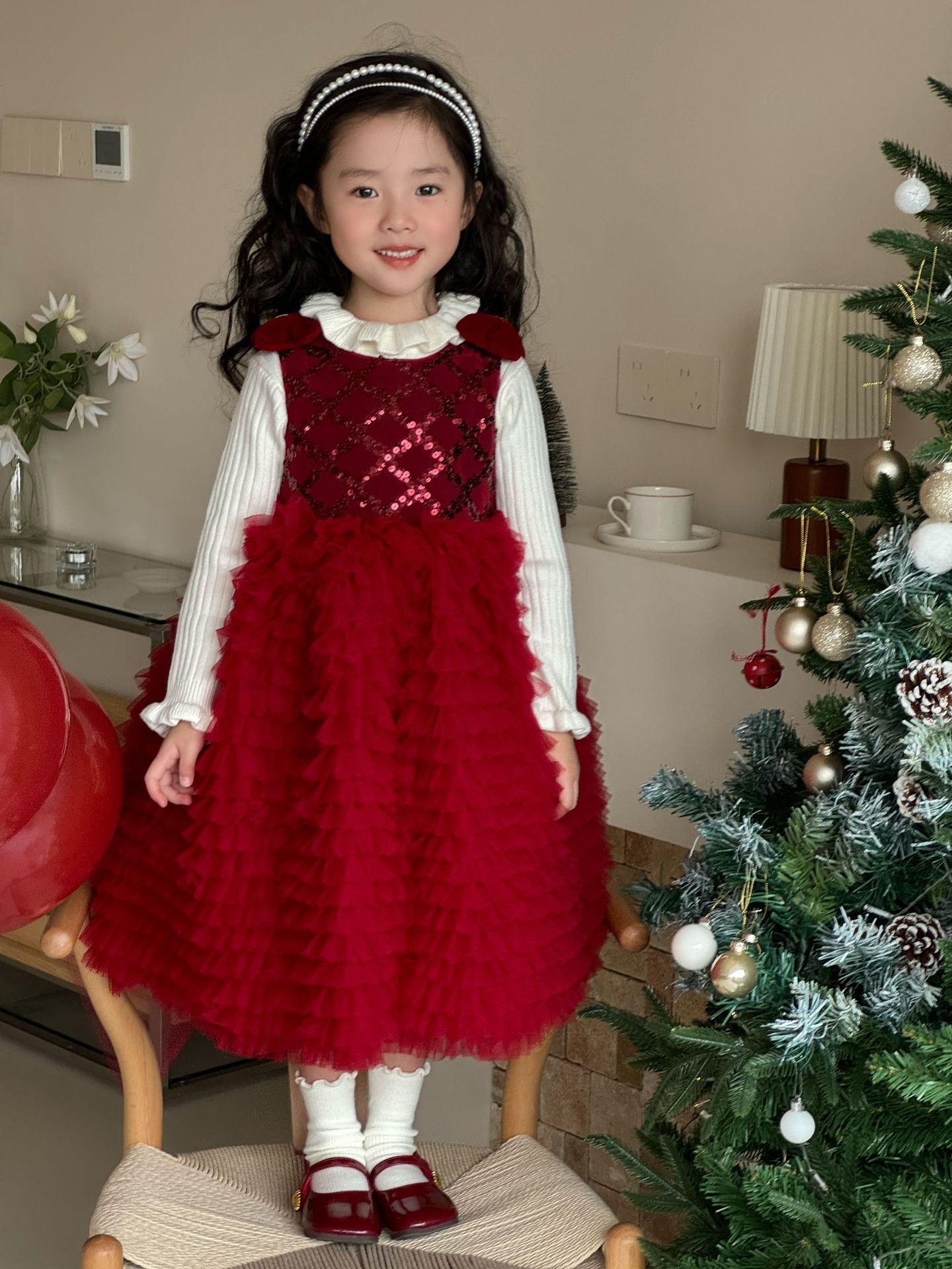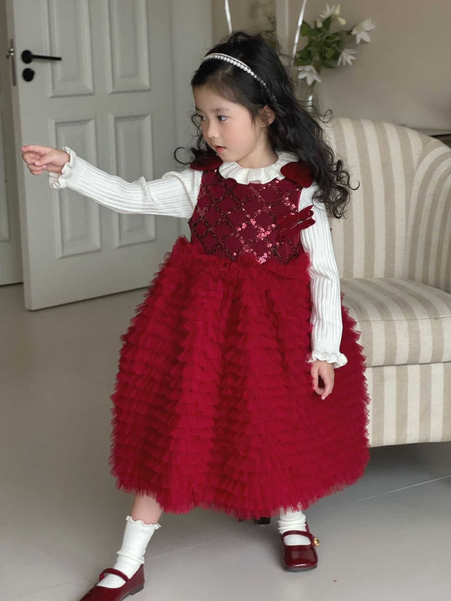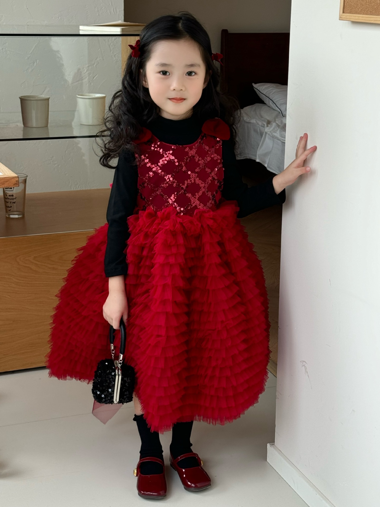 24 새로운 어린 소녀 붉은 새해 원피스 판초 원사 생일 케이크 원피스 소녀 크리스마스 활 원피스스토어 가기