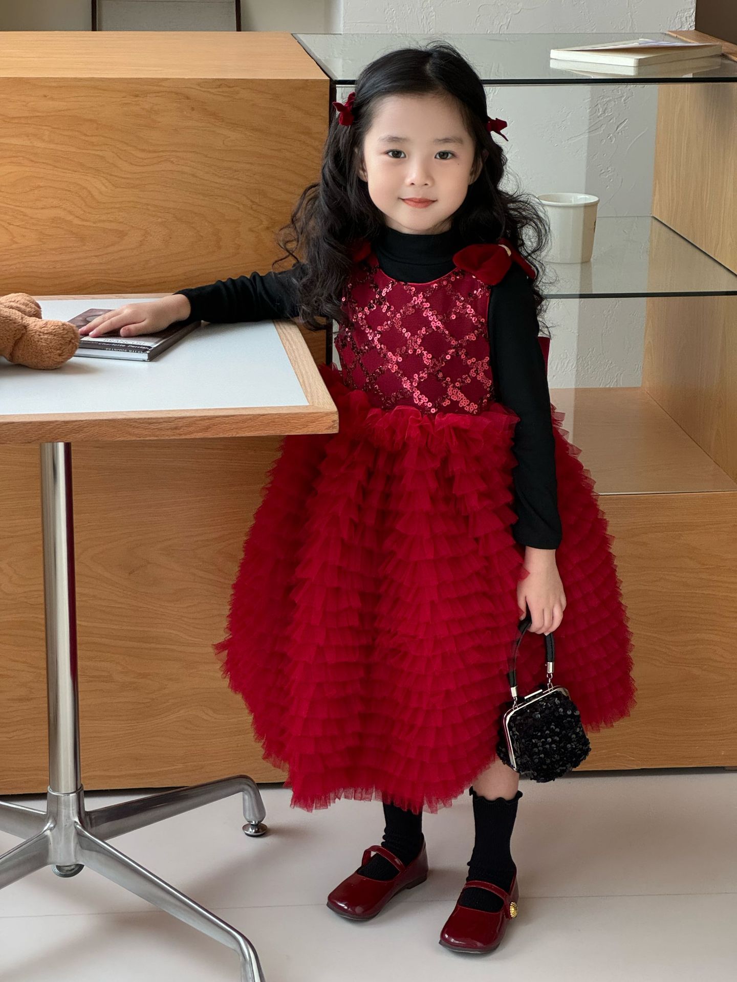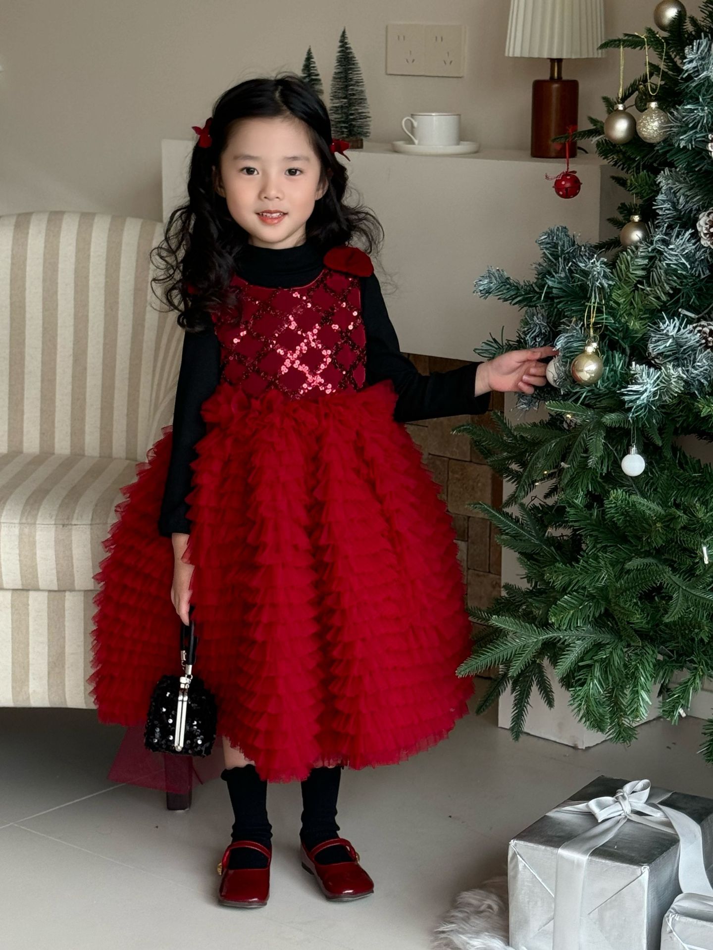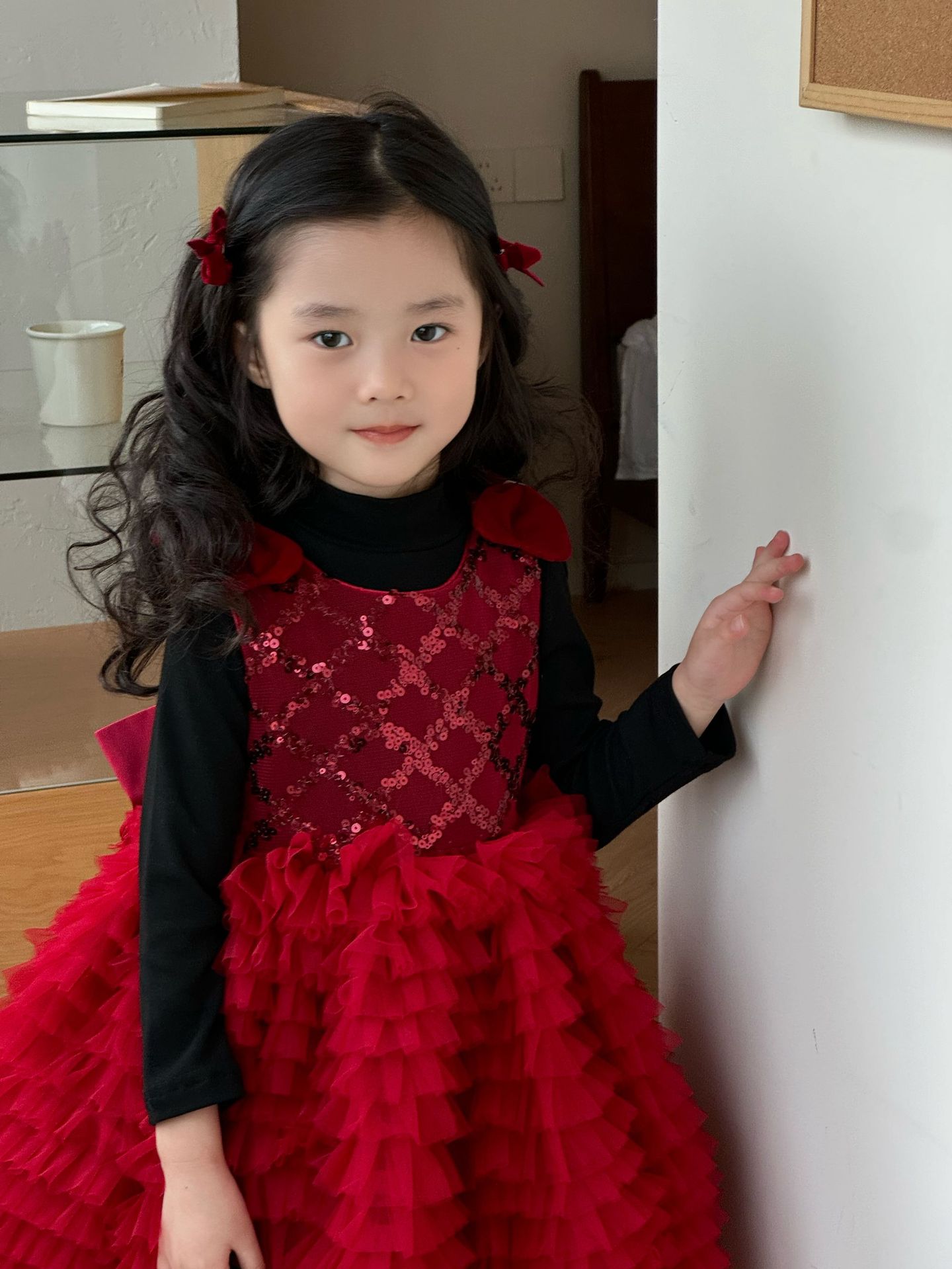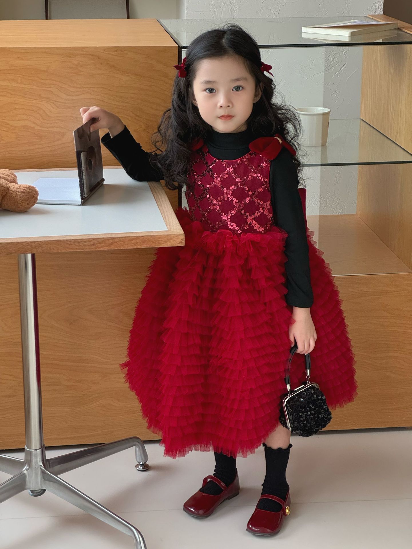 24 새로운 어린 소녀 붉은 새해 원피스 판초 원사 생일 케이크 원피스 소녀 크리스마스 활 원피스스토어 가기