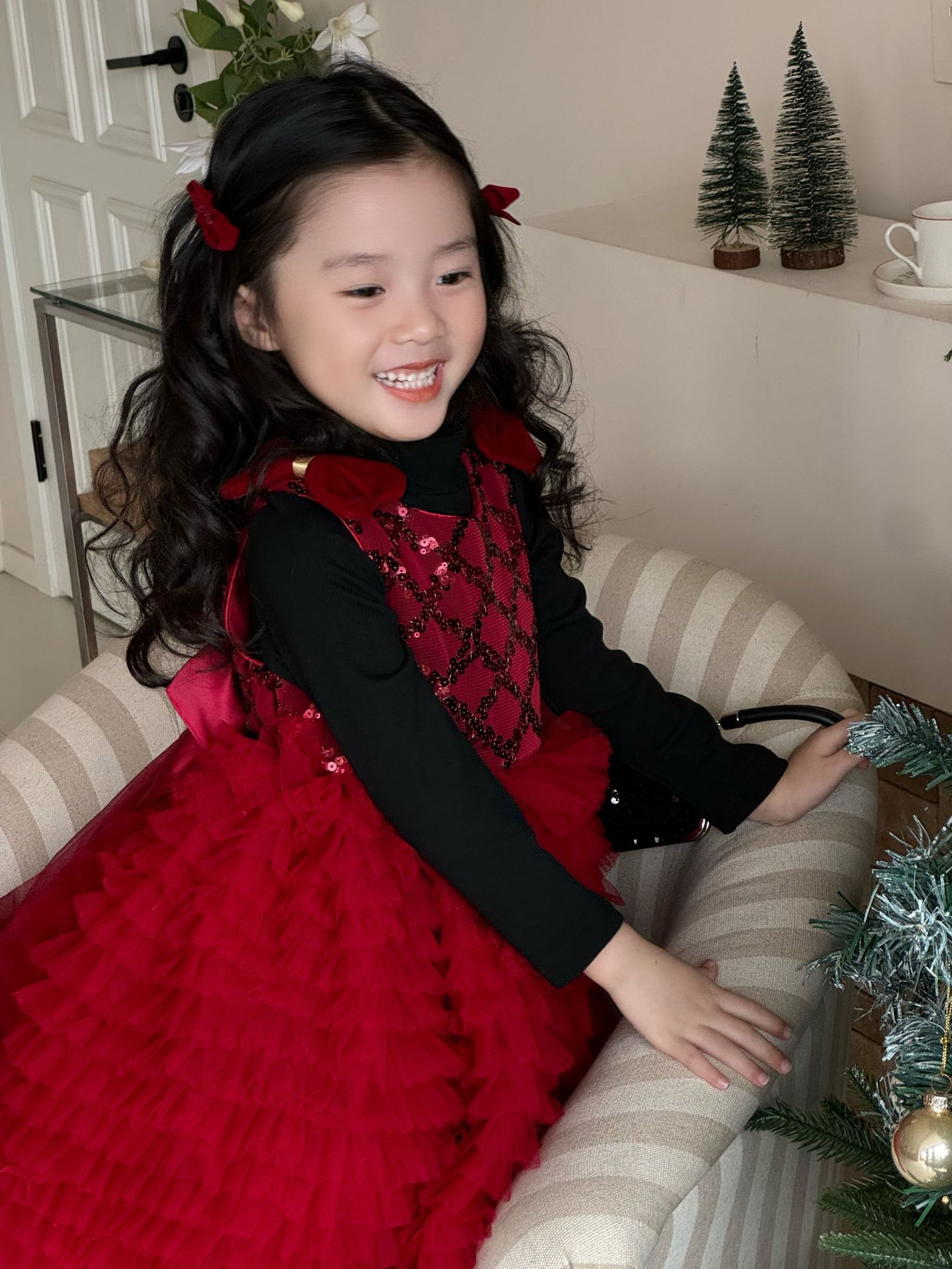 • 빨간색 스커트와 검은색 스웨터