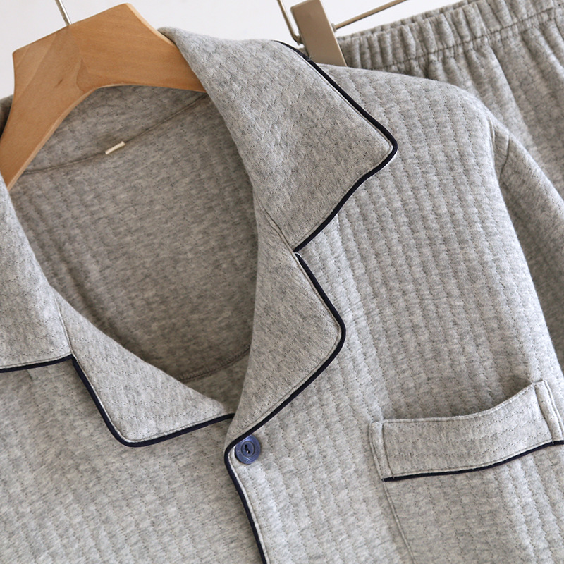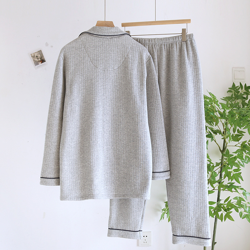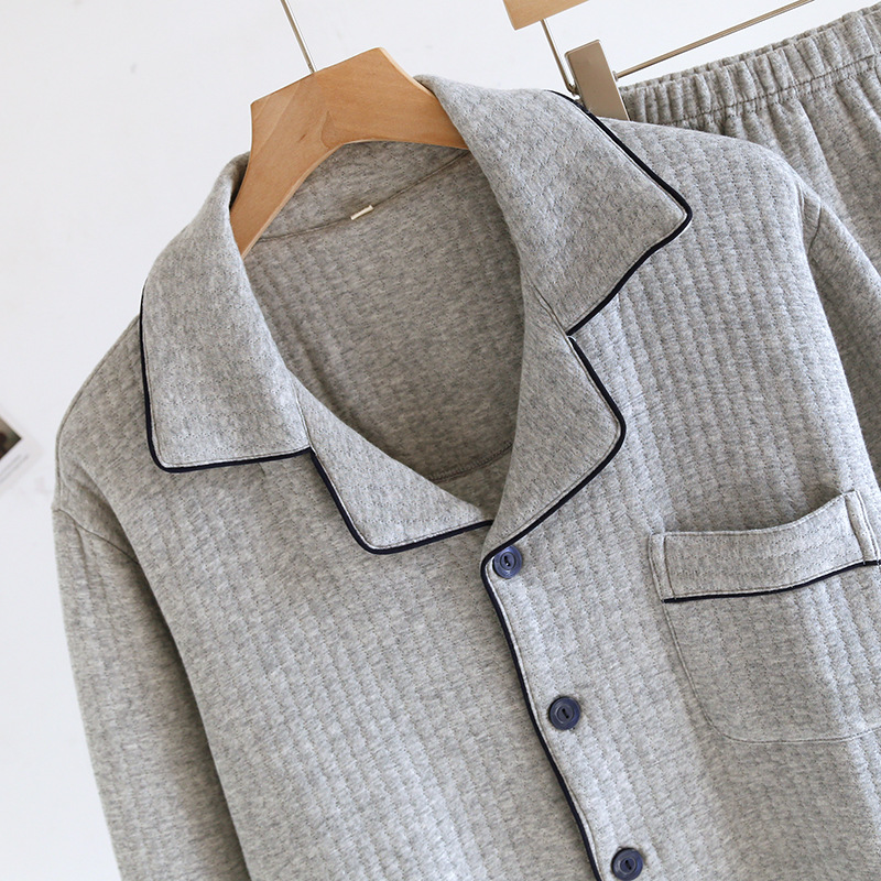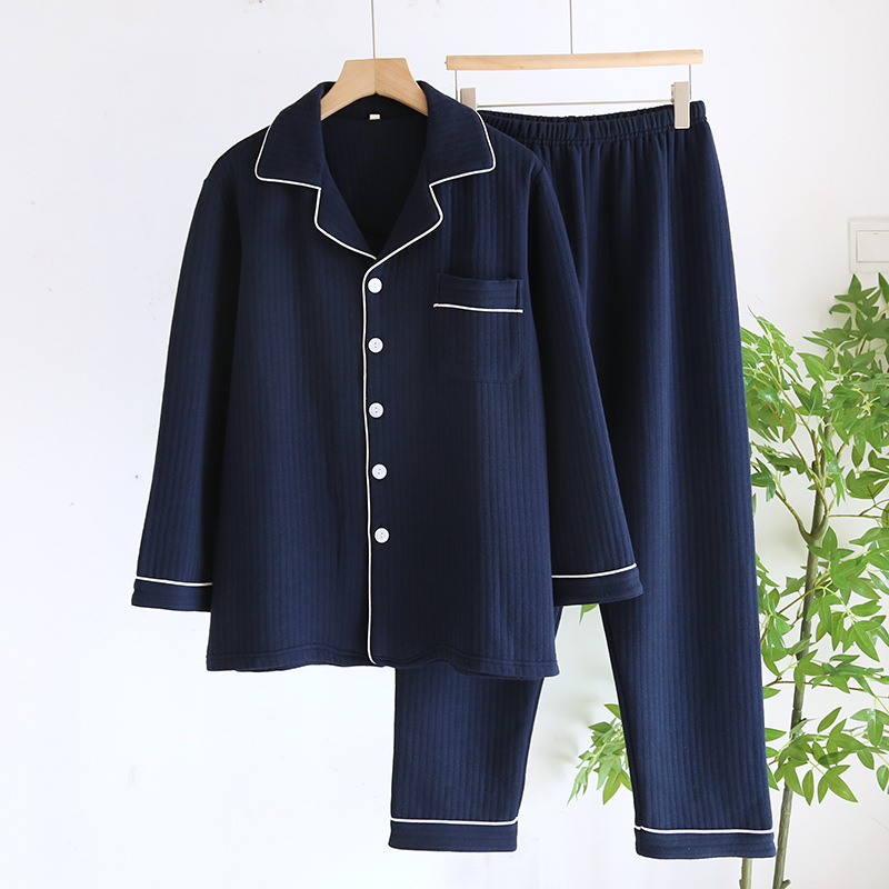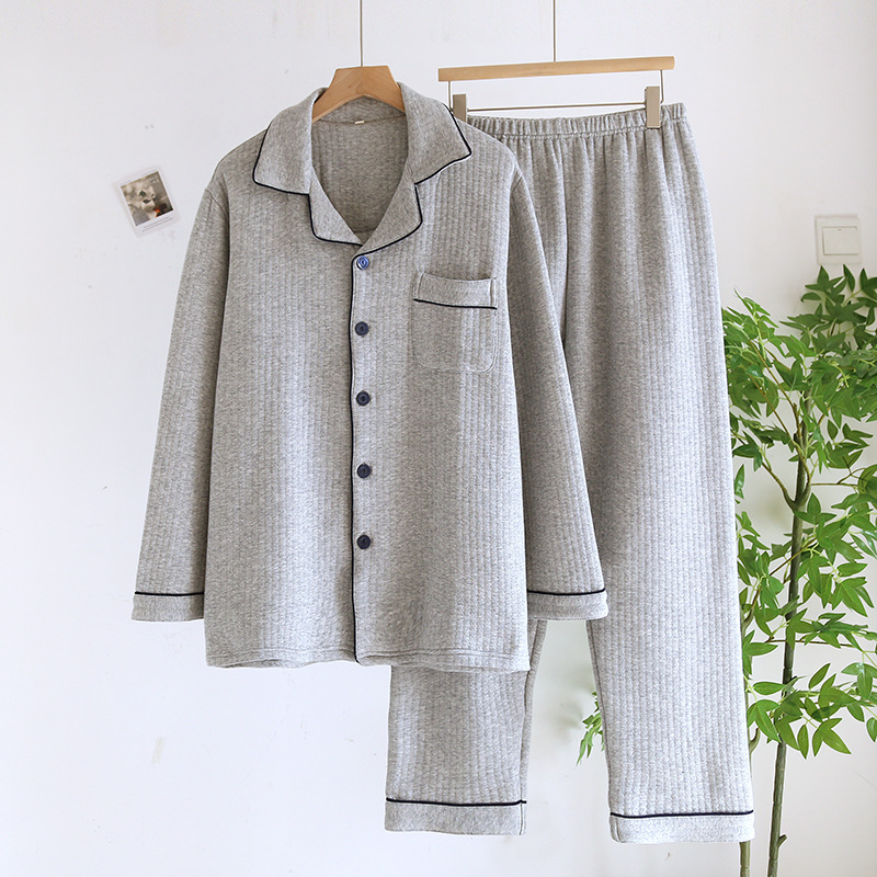 가을과 겨울 면 남성 잠옷 단색 공기 층 플러스 사이즈 잠옷 긴 소매 바지 면화 패딩 홈 의류 세트