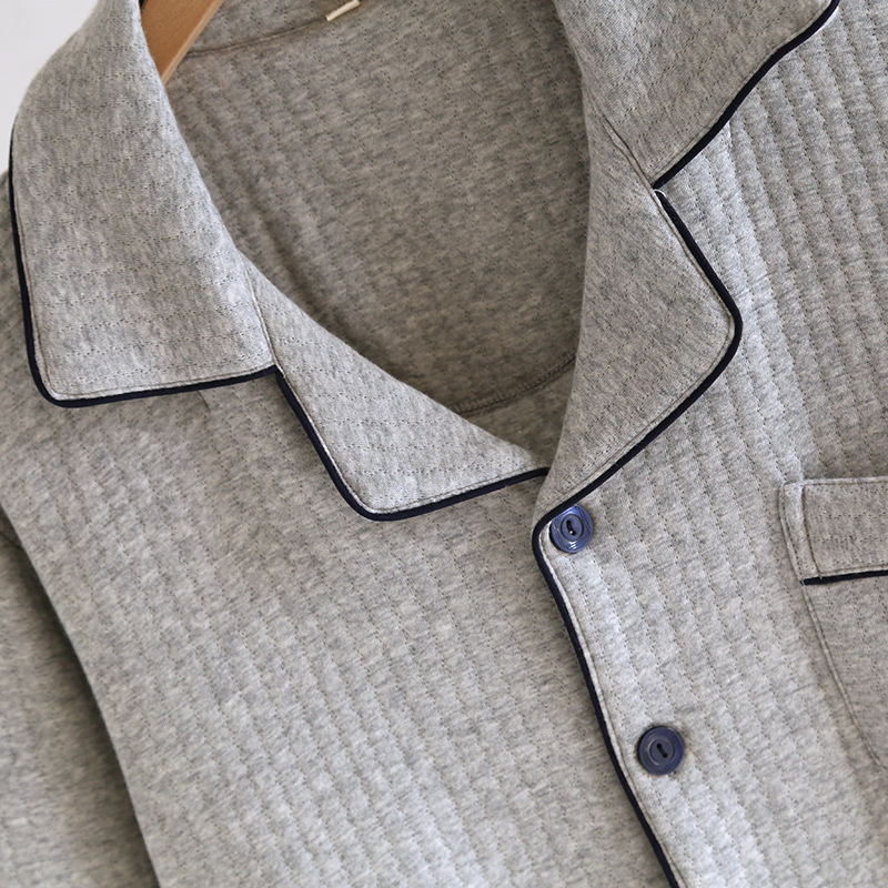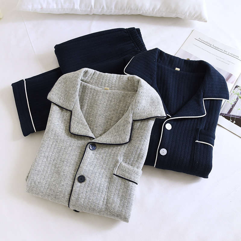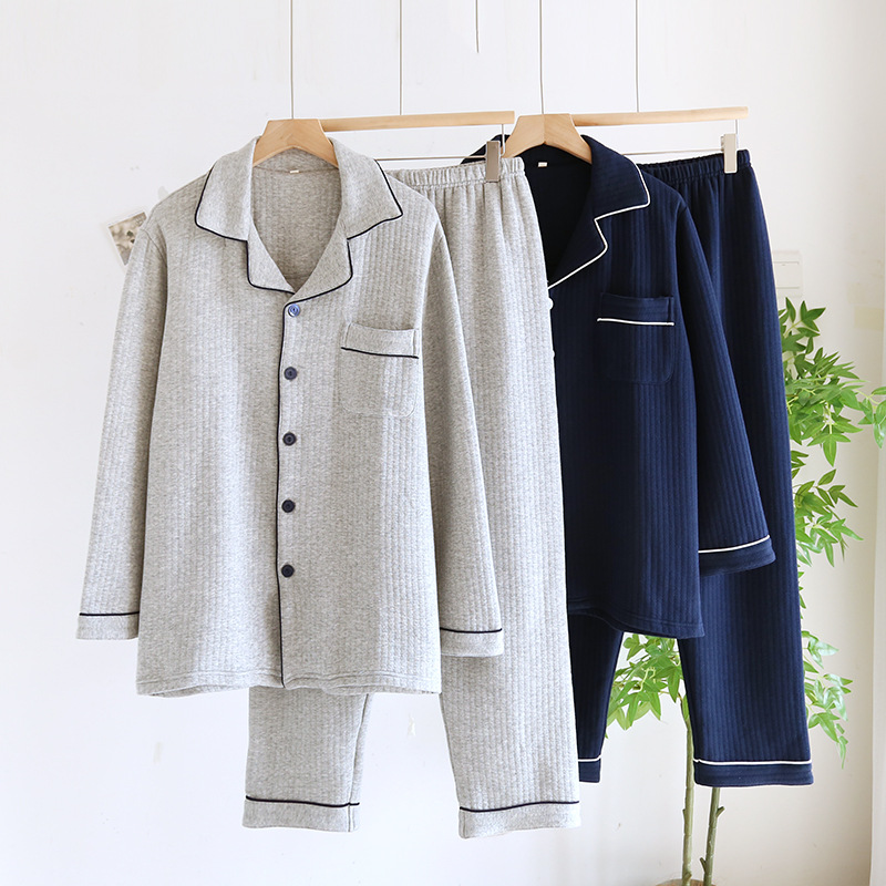 가을과 겨울 면 남성 잠옷 단색 공기 층 플러스 사이즈 잠옷 긴 소매 바지 면화 패딩 홈 의류 세트스토어 가기
