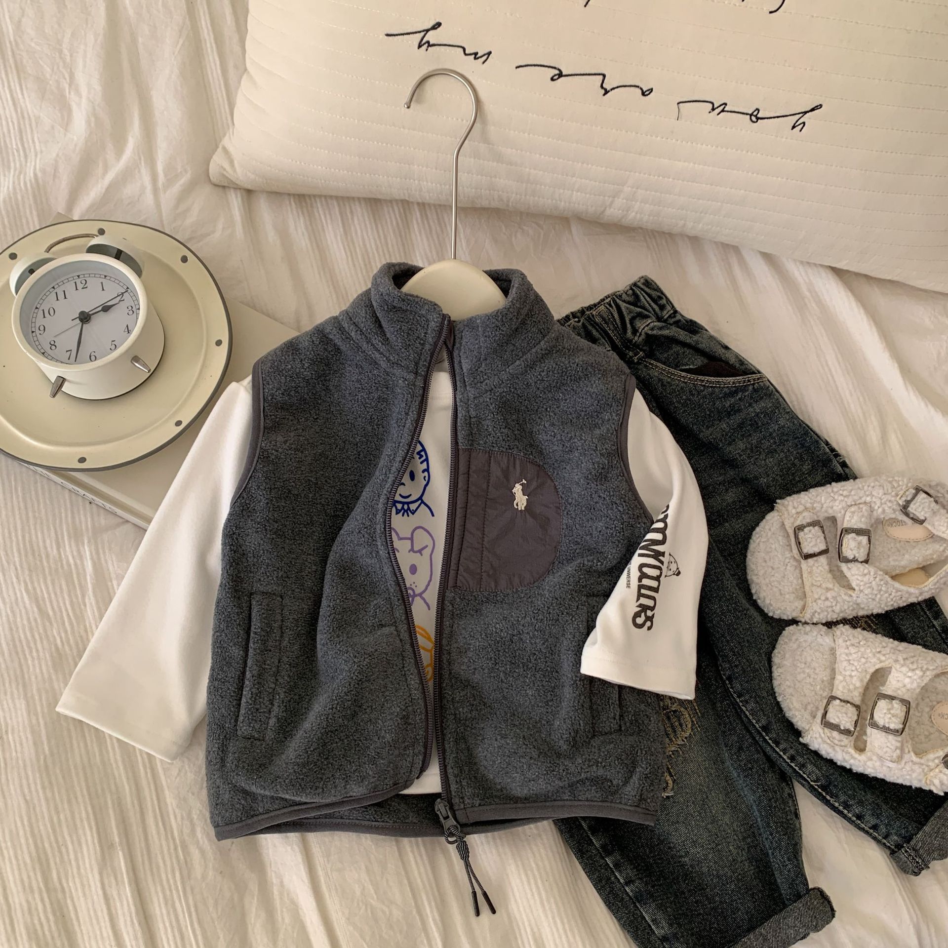 당일 출고 가능! 어린이 코트 2024 겨울 한국 새 소년 및 어린이 아기 용 양모 조끼스토어 가기