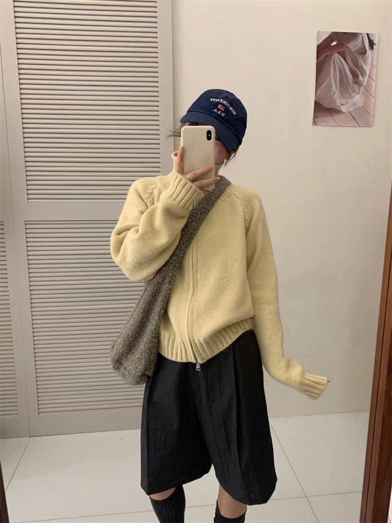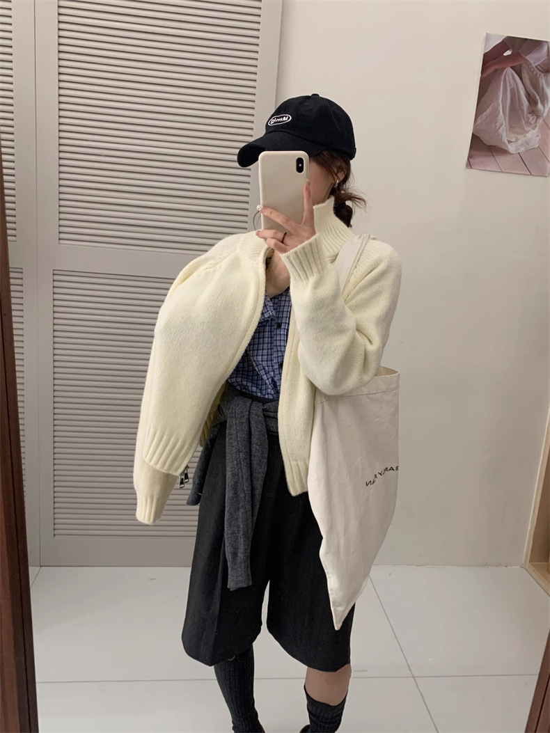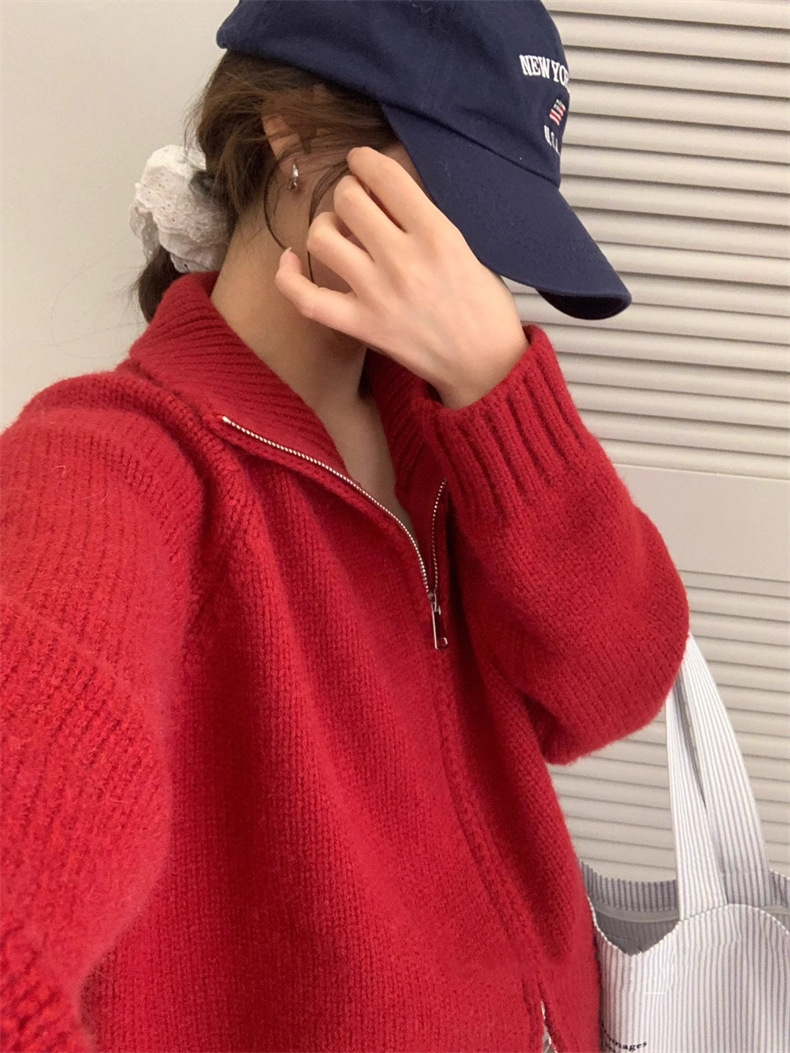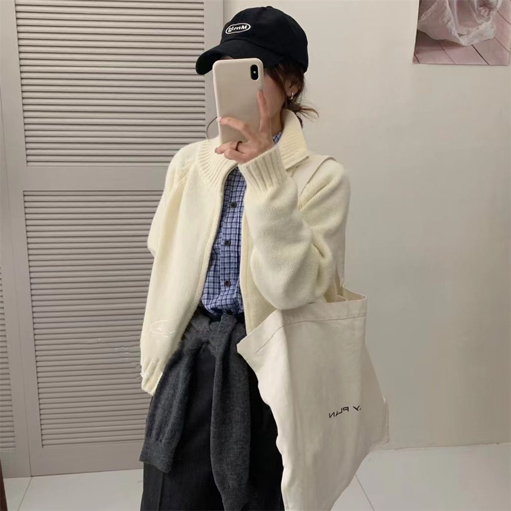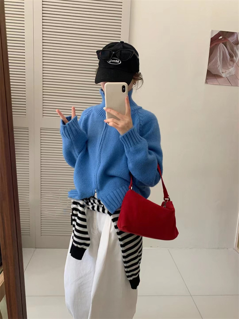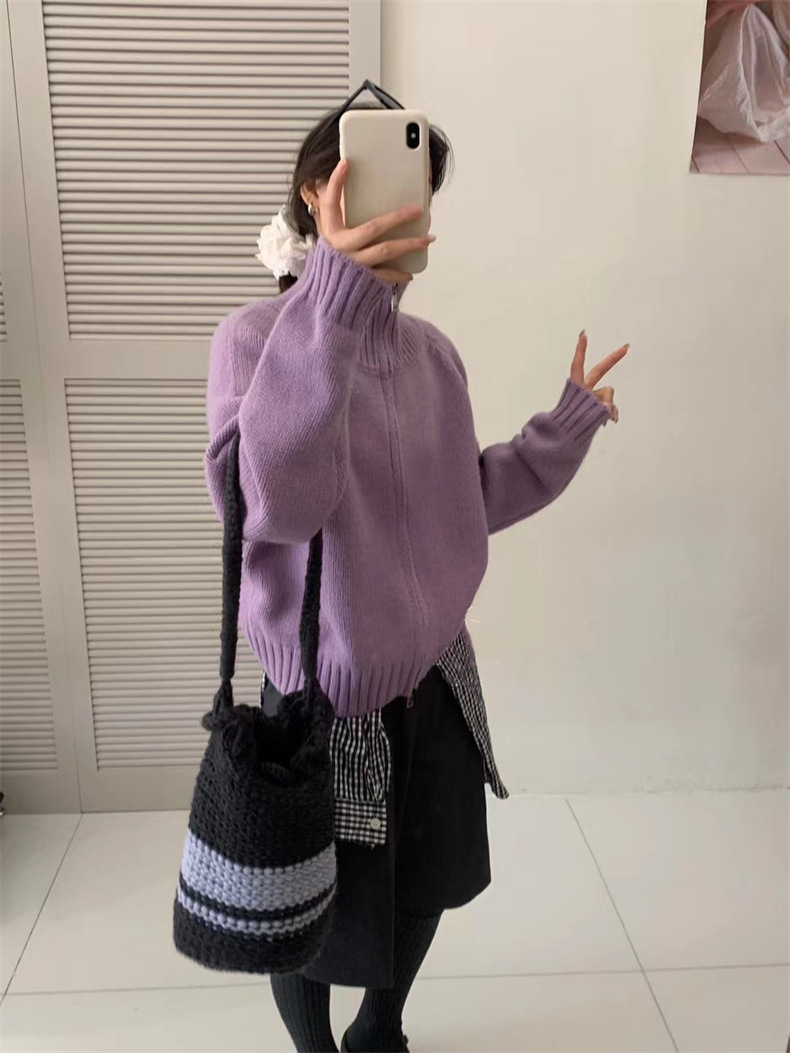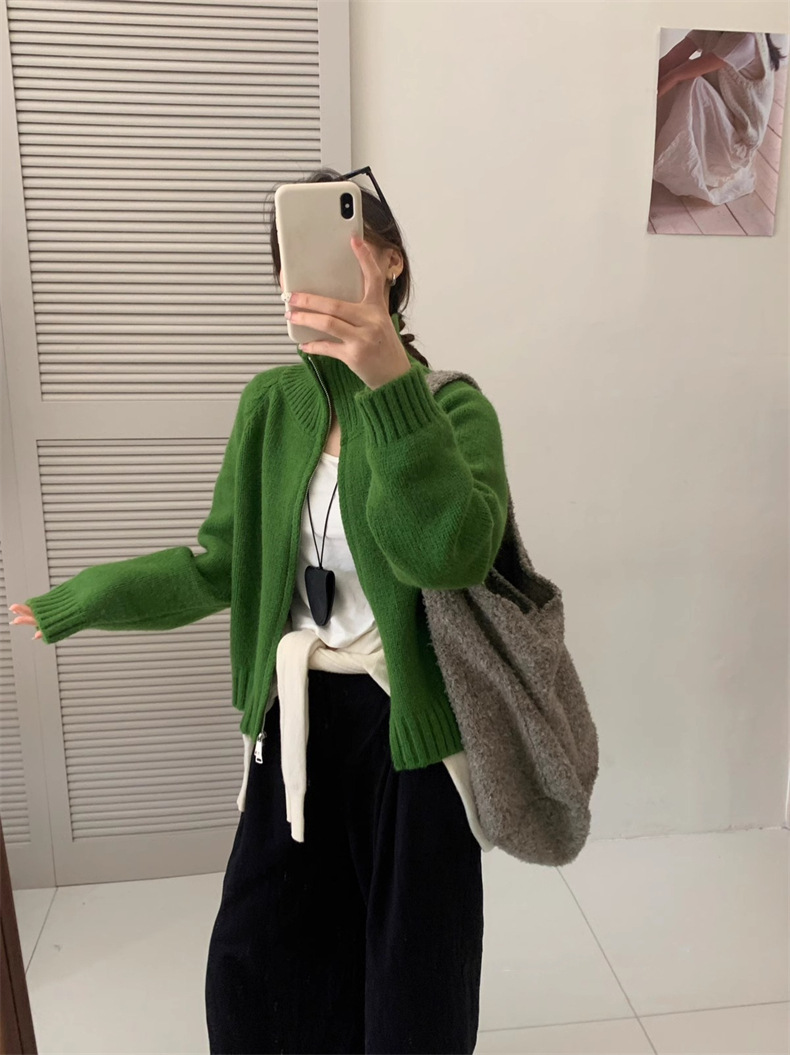 한국 스타일 단색 스탠드 칼라 디자인 스웨터 여성 카디건 가을과 겨울 새로운 부드러운 스타일 소프트 왁스 더블 지퍼 니트 자켓스토어 가기