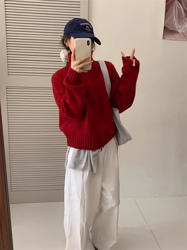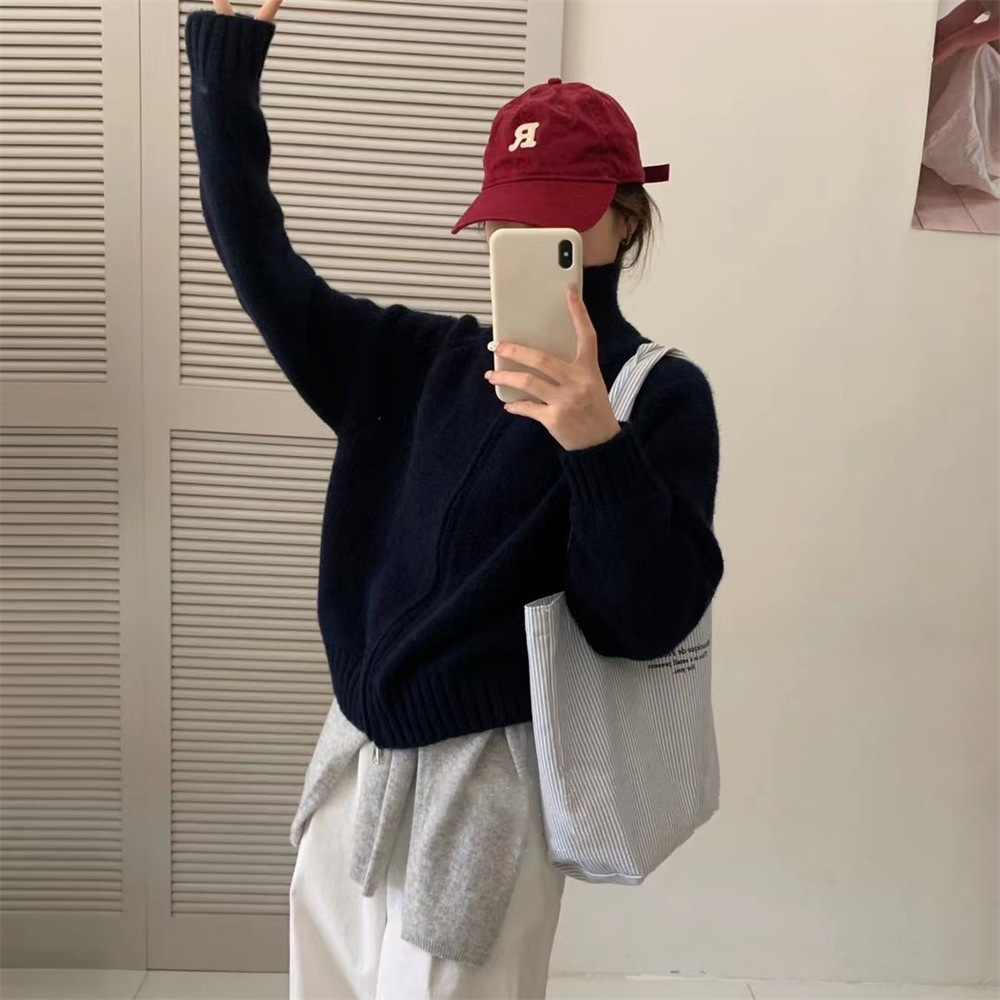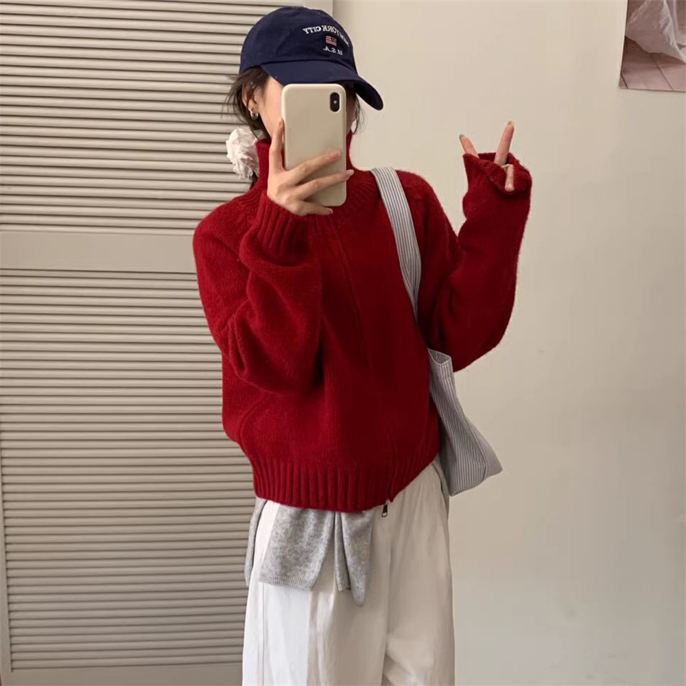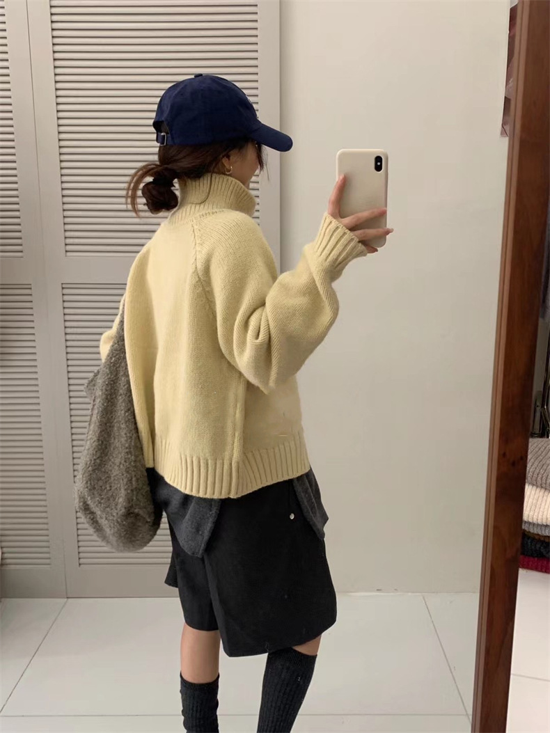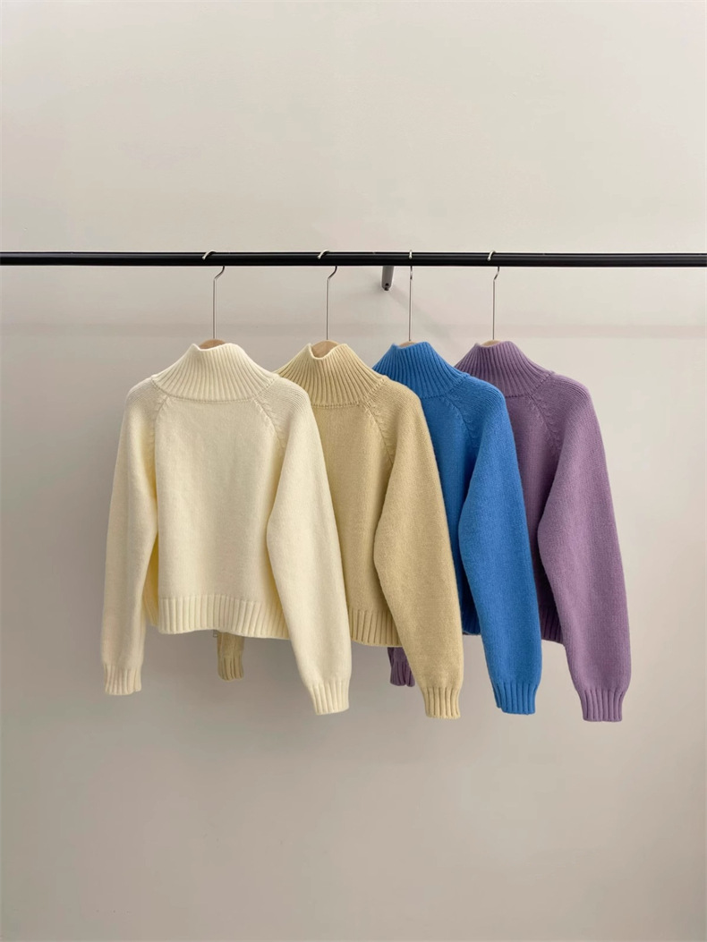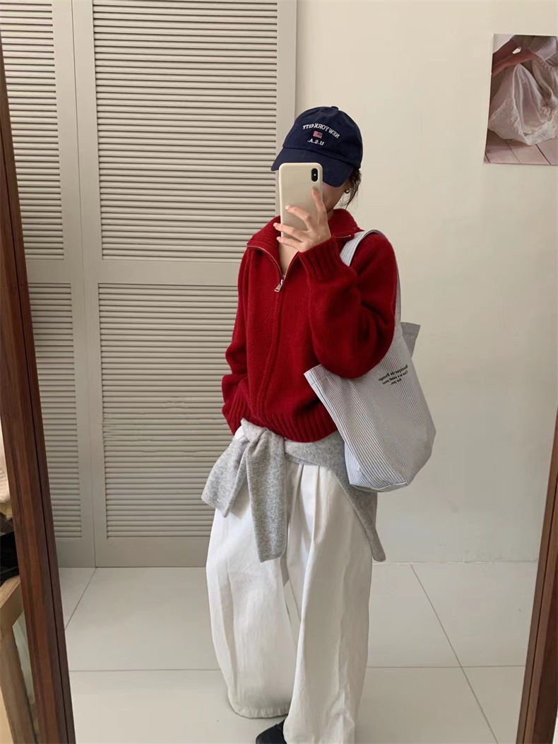 한국 스타일 단색 스탠드 칼라 디자인 스웨터 여성 카디건 가을과 겨울 새로운 부드러운 스타일 소프트 왁스 더블 지퍼 니트 자켓스토어 가기