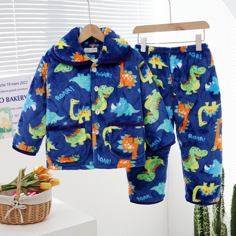 소녀와 소년을위한 겨울 어린이 3 층 퀼트 파자마 플란넬 산호 세트 아기 기모 두꺼운 홈 옷스토어 가기