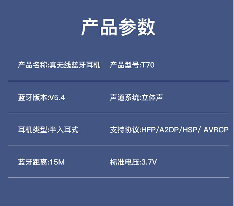 새로운 TWS 국경 간 무역 T70 진정한 무선 블루투스 헤드셋 5.4 무선 귀 수면 헤드셋 미니스토어 가기