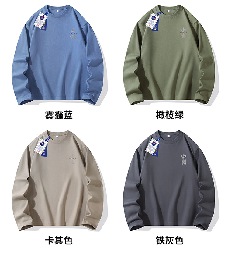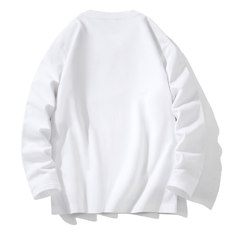 200g 헤비 솔리드 컬러 긴 소매베이스 티셔츠 라운드 넥 느슨한 그물 에디션 코튼 남성과 여성의 봄과 가을 긴 소매스토어 가기