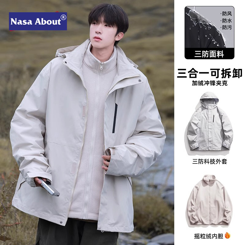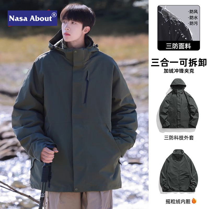 NASA 충전 재킷 남자 가을 겨울 2024 새로운 두꺼운 3 대 1 분리 가능한 방풍 등산 재킷스토어 가기