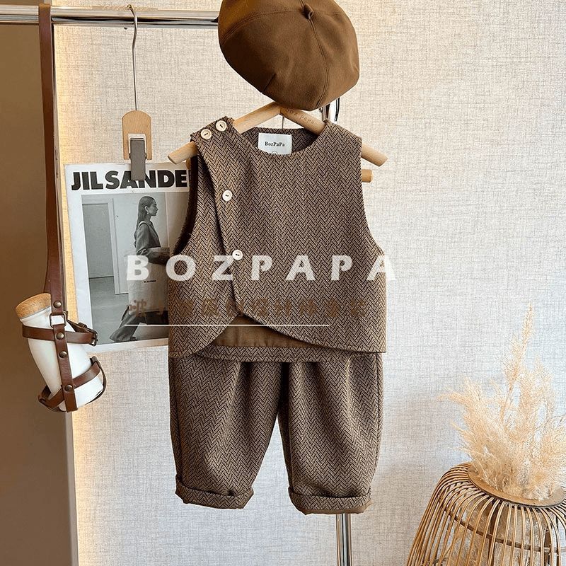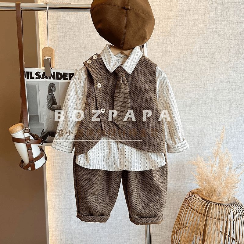 남아용 한국 스타일 조끼 셔츠 3종 세트 2024년 봄 가을 신상 아기 패션 어린이 세트