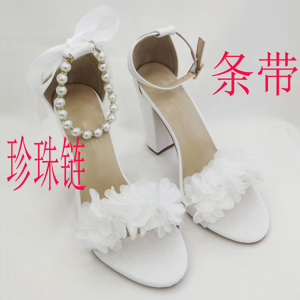 리본 진주 체인 중공 여성 하이힐 오픈토 샌들 대외 무역 특대 사이즈 이브닝 슈즈 2025년 여름 하이힐