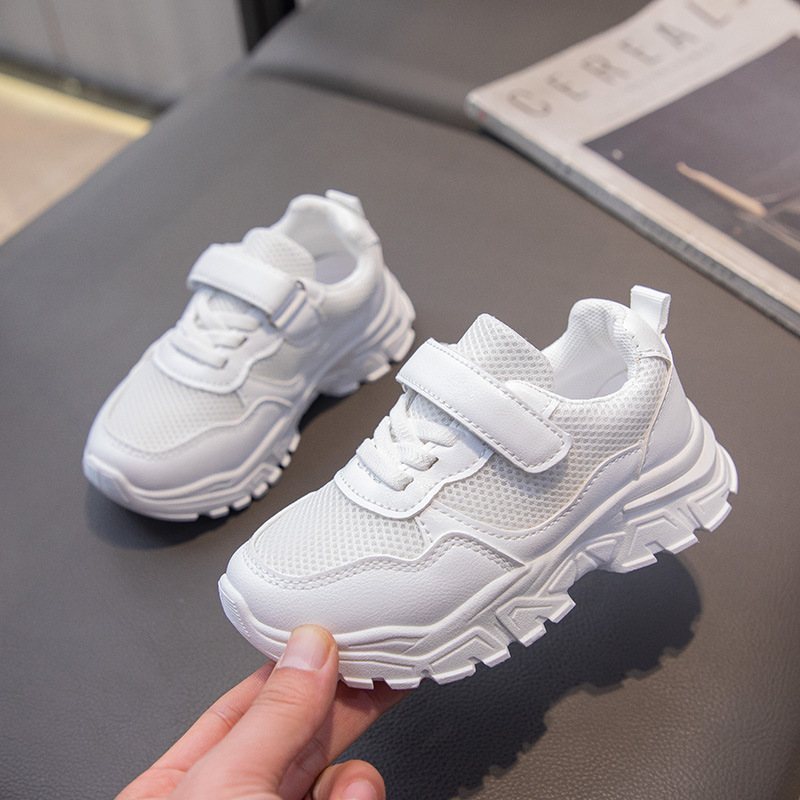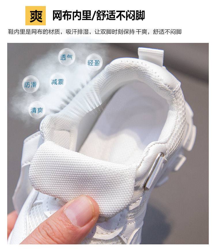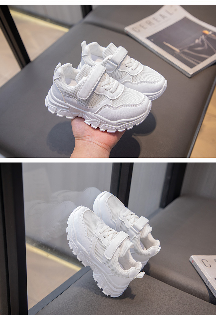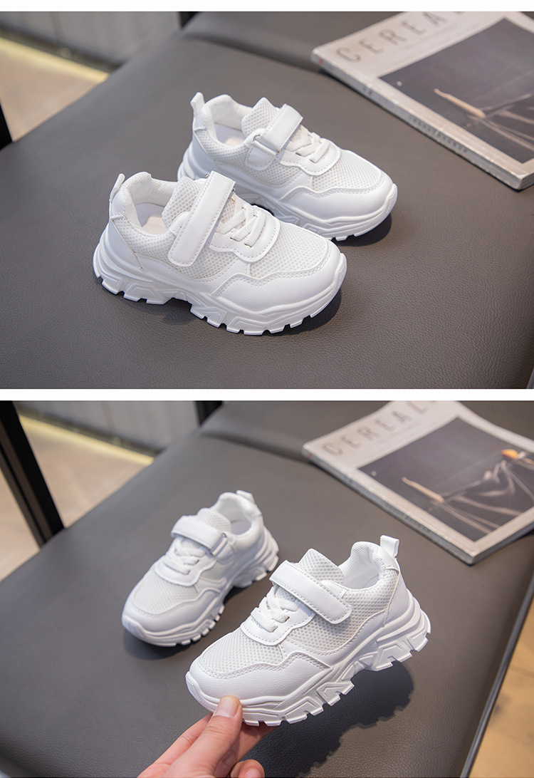 2025 어린이 스포츠 신발 봄과 가을 새로운 메쉬 가죽 소년 아빠 신발 통기성 캐주얼 흰색 신발 여름