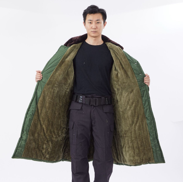 군용 큰 코트 남성과 여성의 녹색 순수 코튼 코트 동북 큰면 코트 노란색 겨울 남성용 두꺼운 긴 보안 코트스토어 가기