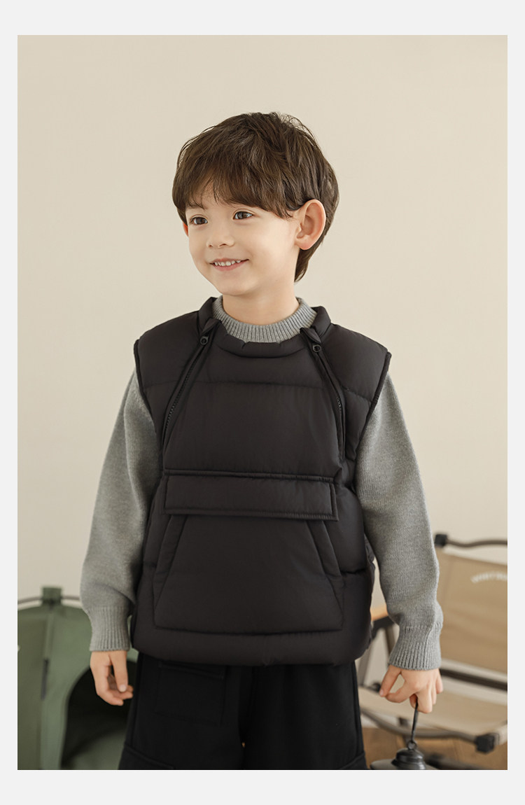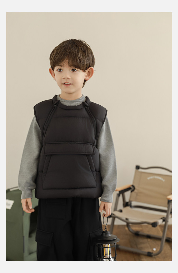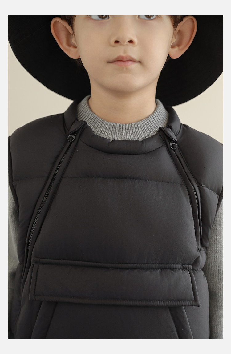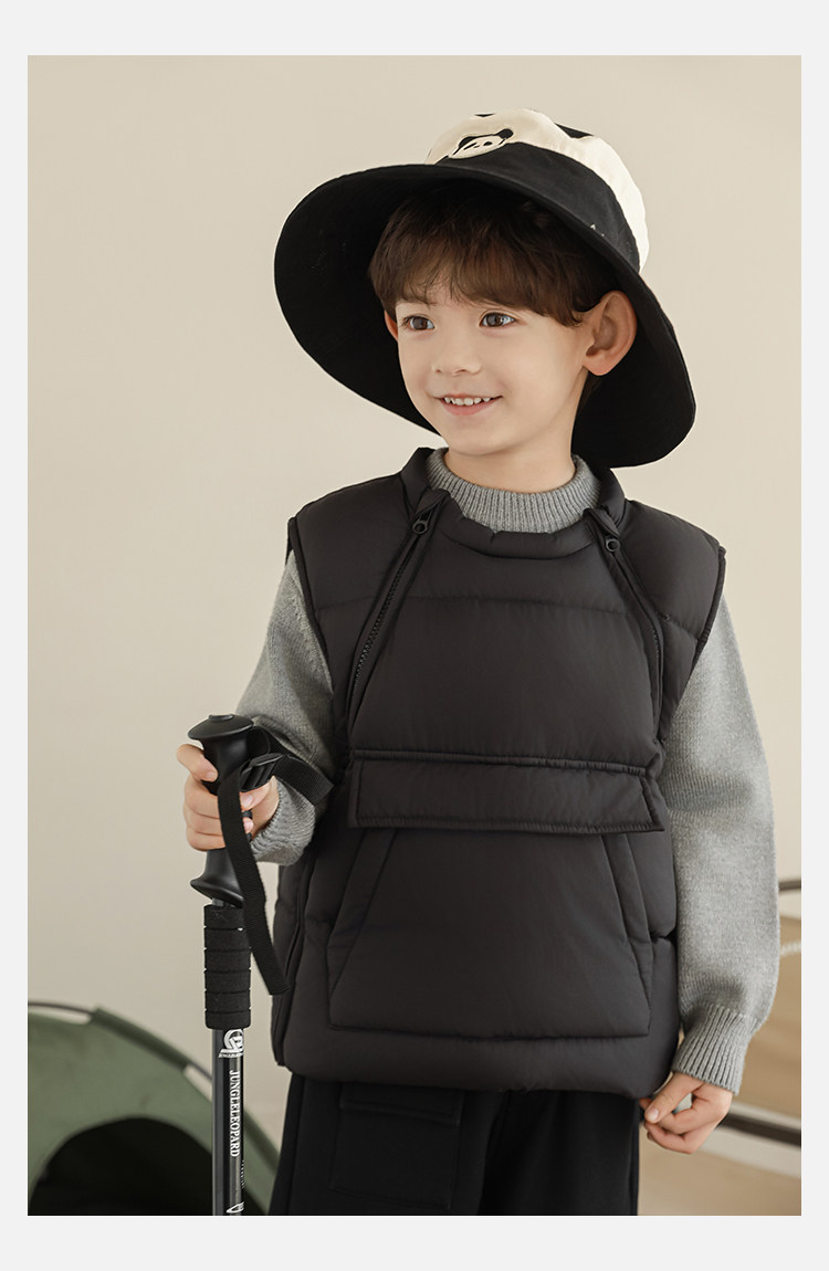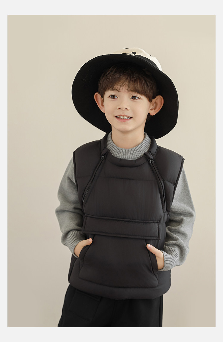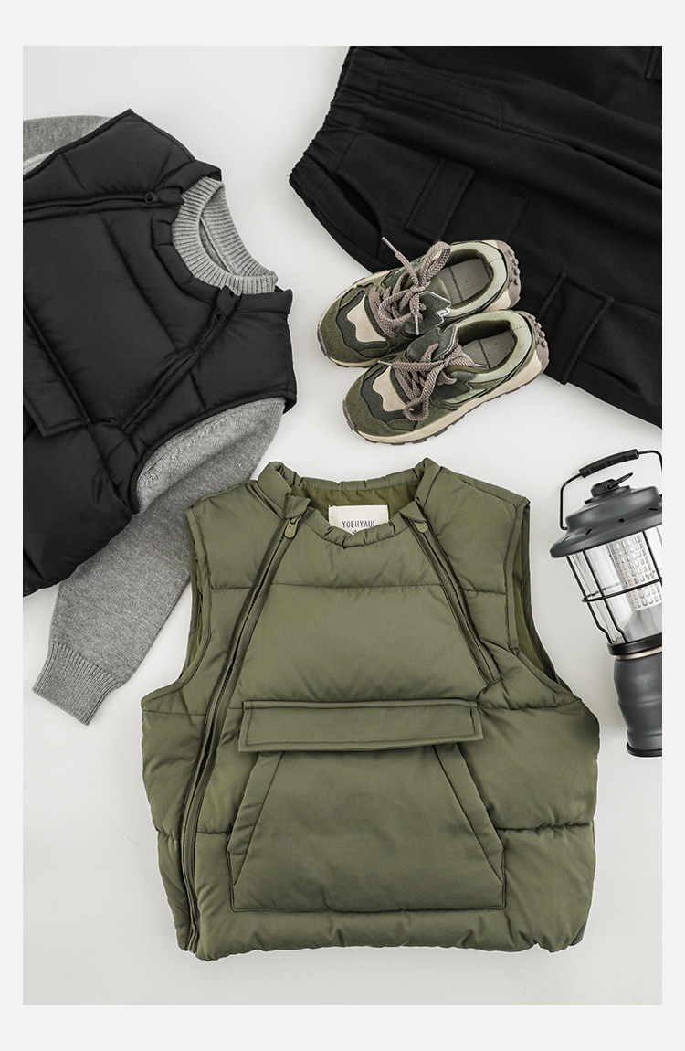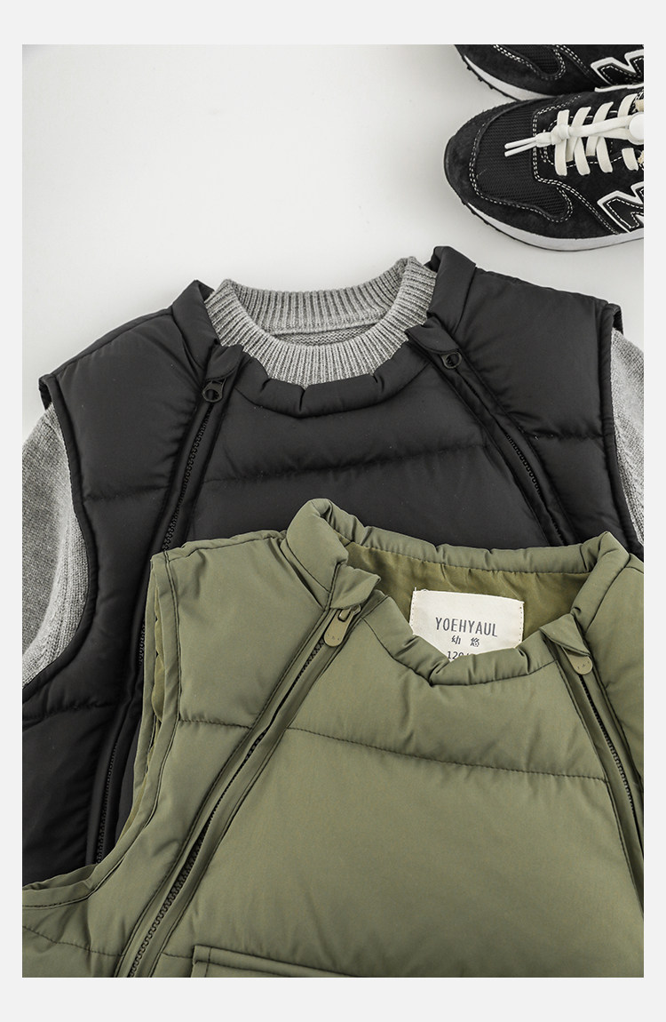 Wulibu Yinan 2025 새로운 스타일 플립 포켓 다운 조끼 겨울 어린이 패션 따뜻한 조끼 재킷
