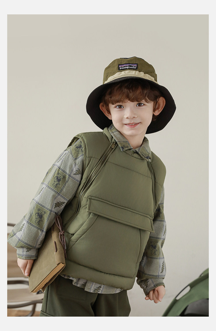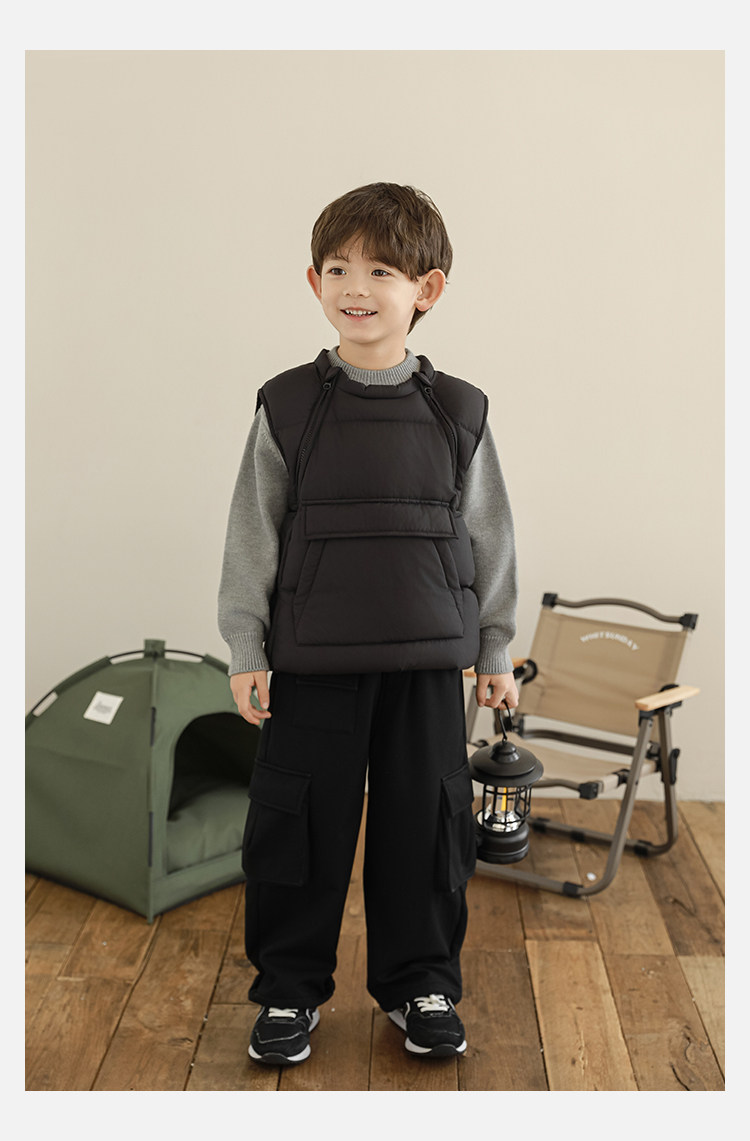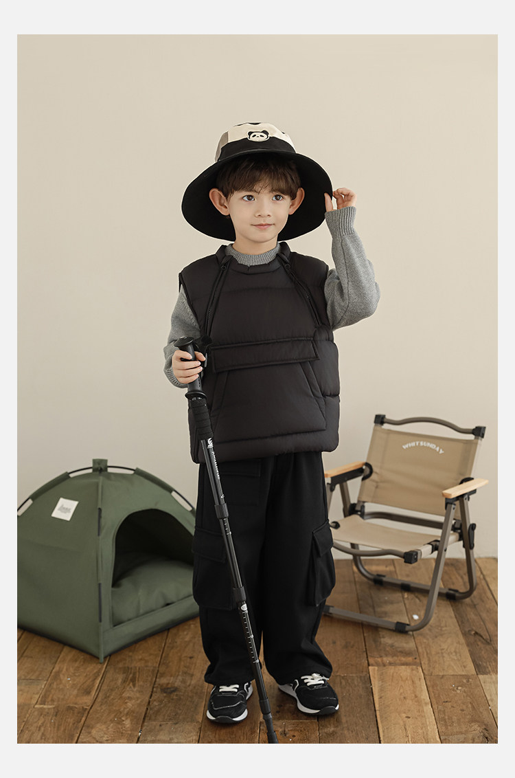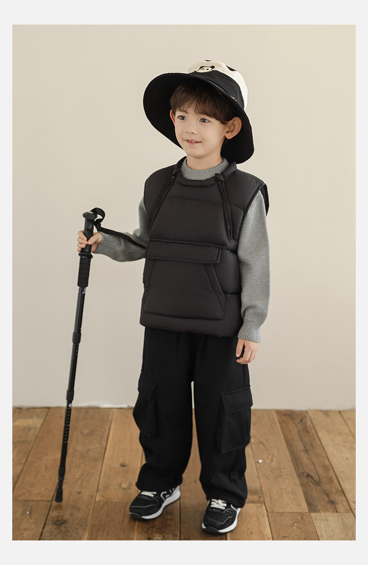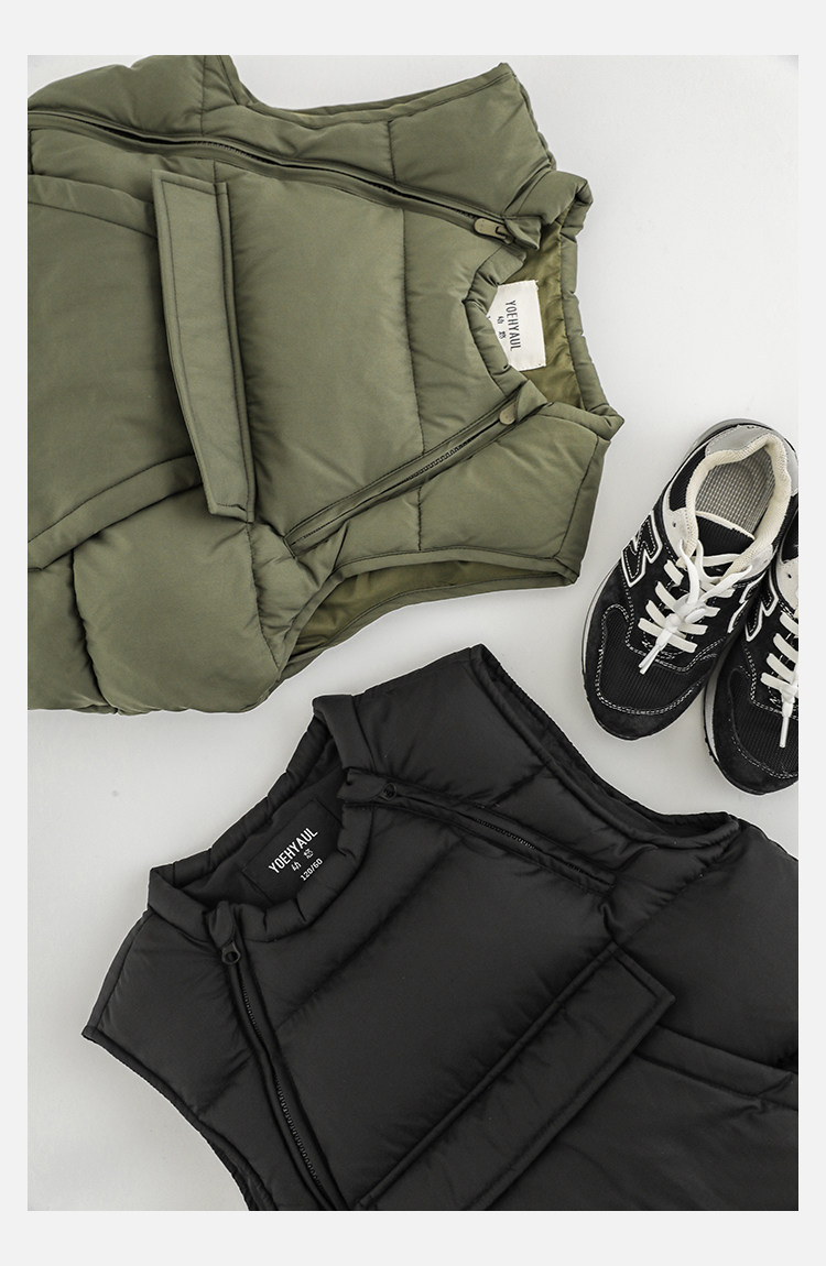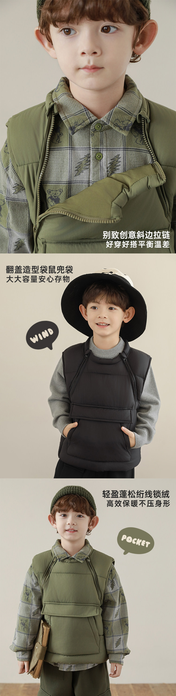 Wulibu Yinan 2025 새로운 스타일 플립 포켓 다운 조끼 겨울 어린이 패션 따뜻한 조끼 재킷
