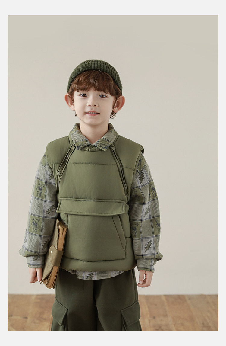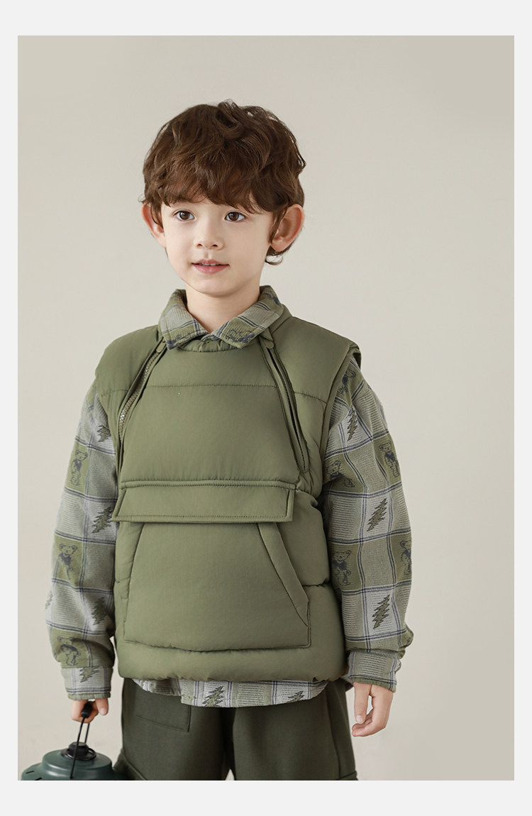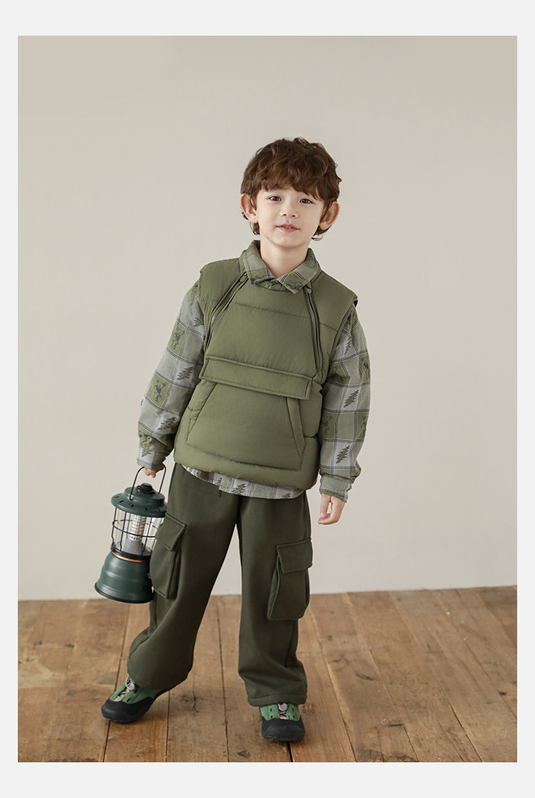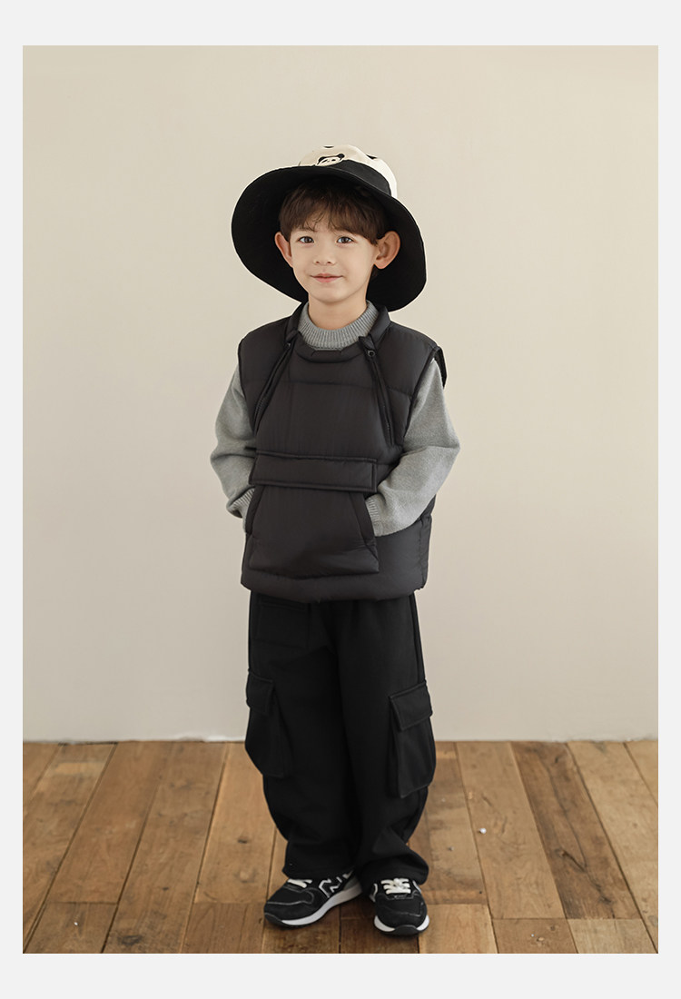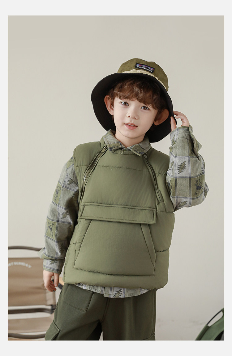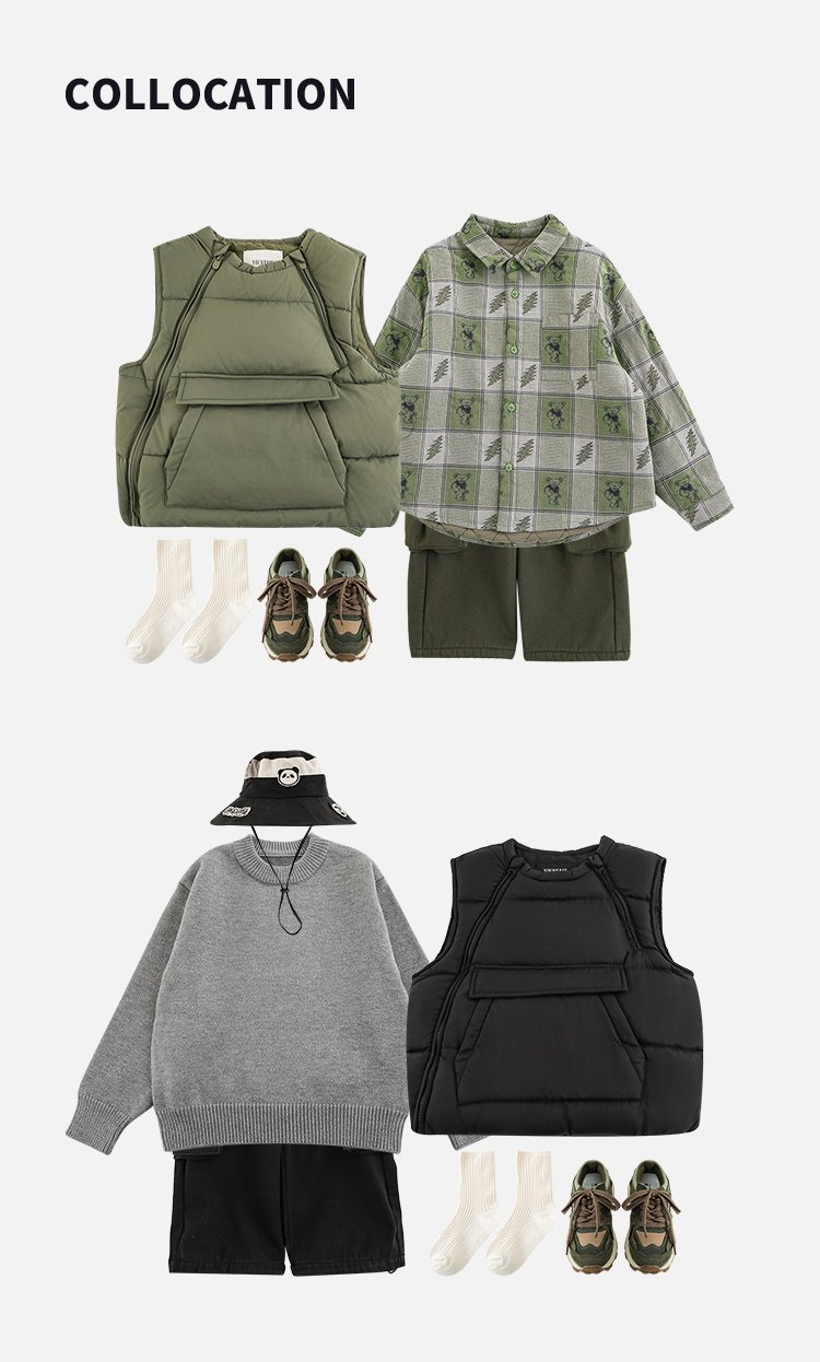 Wulibu Yinan 2025 새로운 스타일 플립 포켓 다운 조끼 겨울 어린이 패션 따뜻한 조끼 재킷