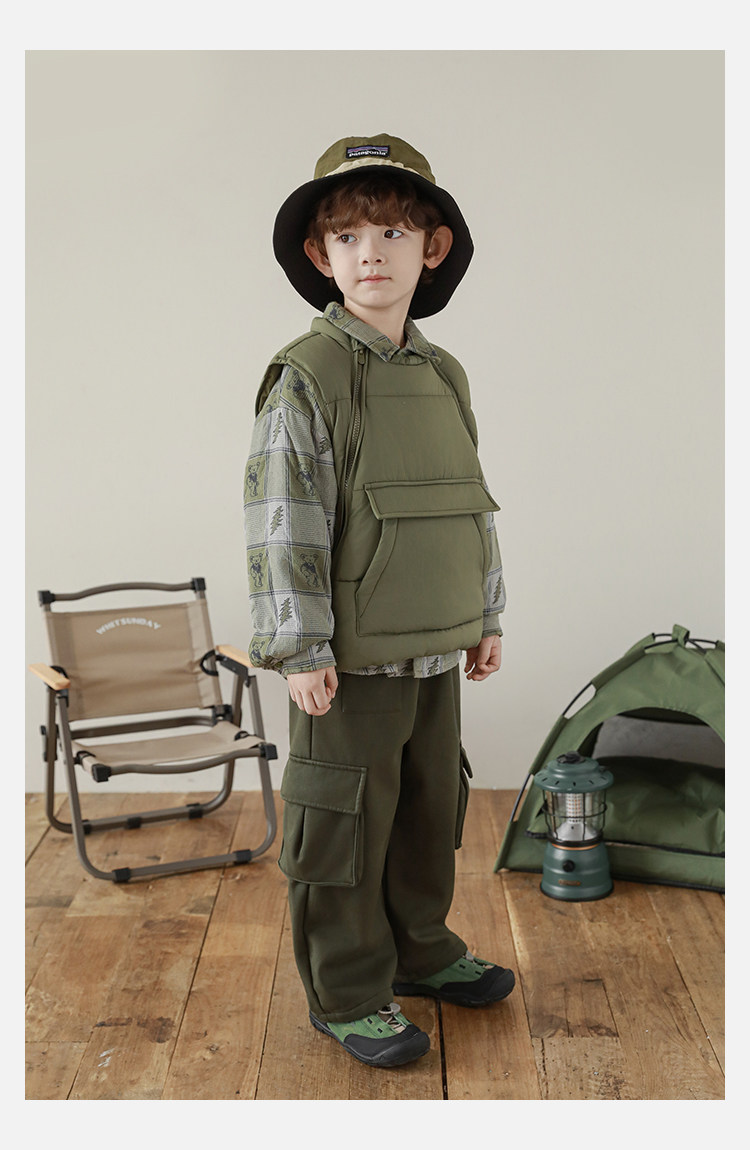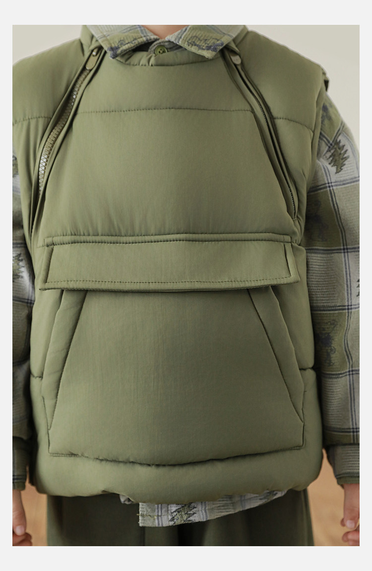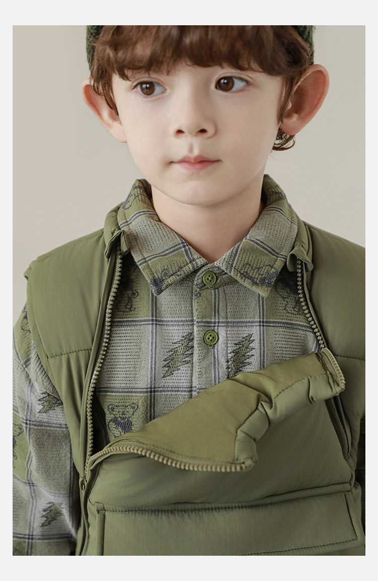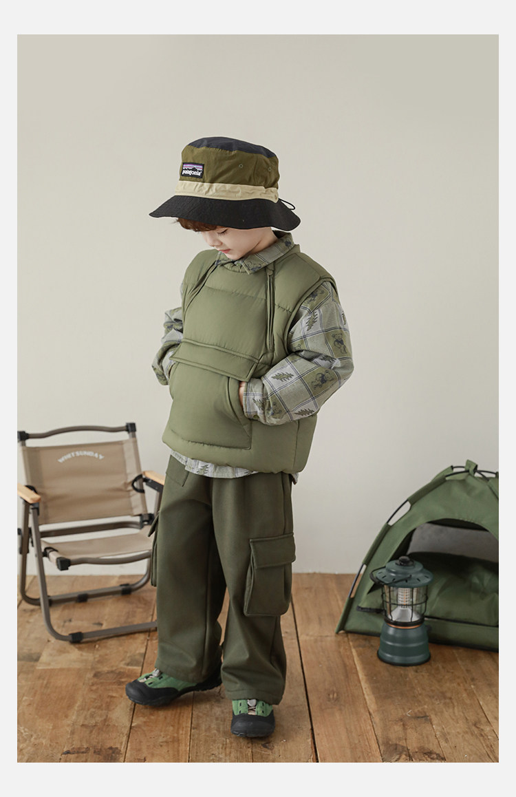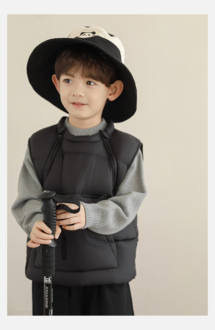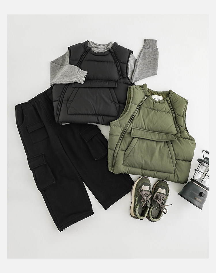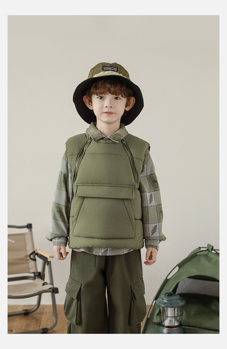 Wulibu Yinan 2025 새로운 스타일 플립 포켓 다운 조끼 겨울 어린이 패션 따뜻한 조끼 재킷
