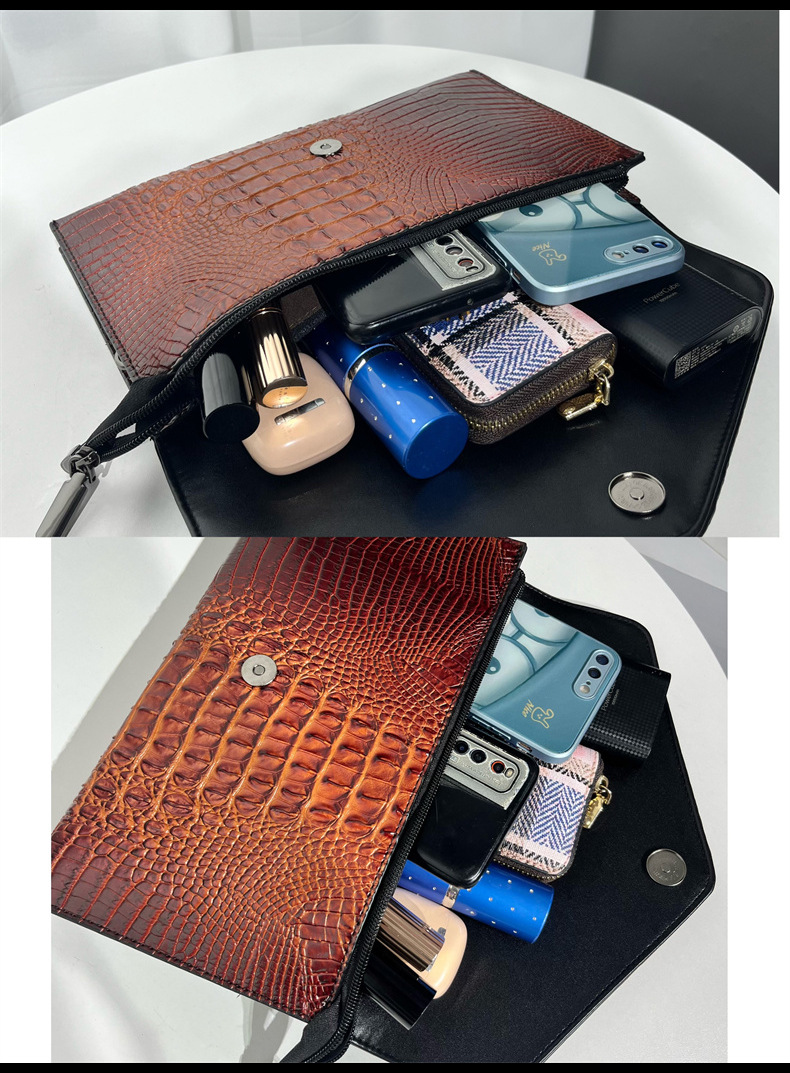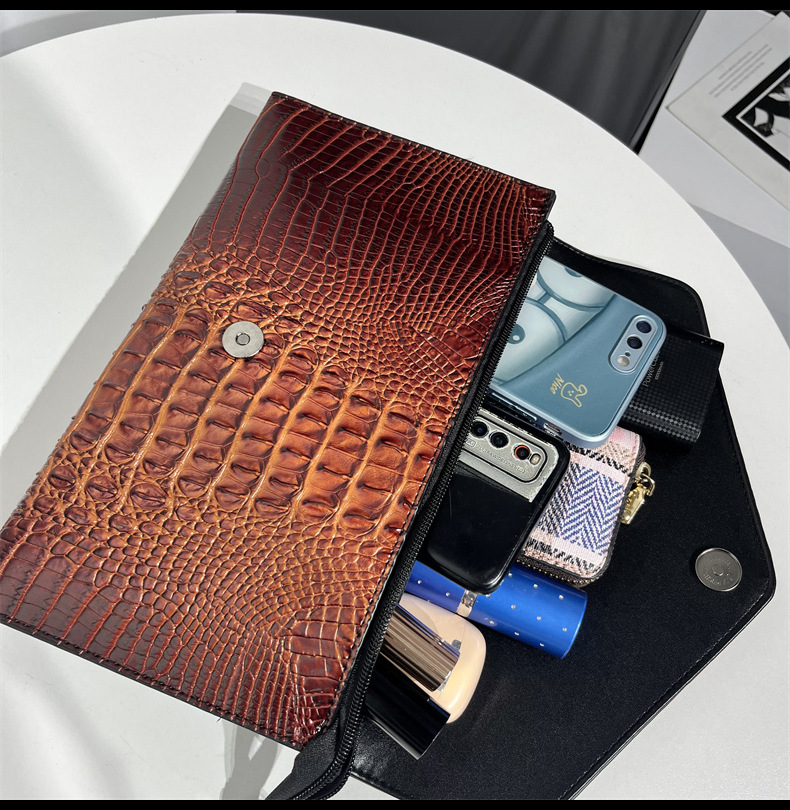 클러치 백 여성 유럽 및 미국 악어 양각 질감 어깨 가방 캐주얼 틈새 디자인 통근 캐주얼 가방스토어 가기