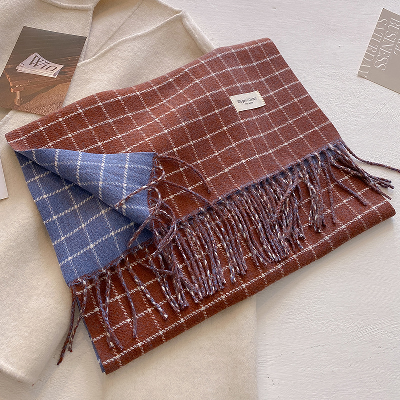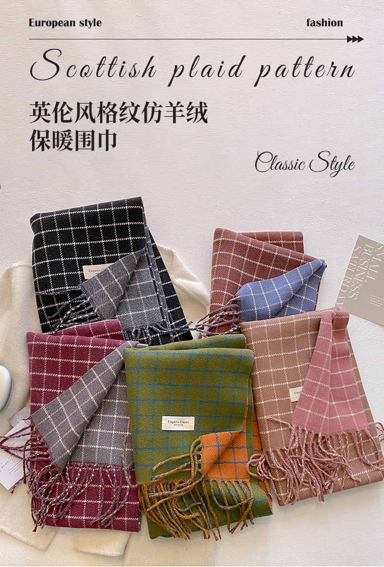 영국 스타일 격자 무늬 스카프 가을과 겨울 새로운 캐시미어 빈티지 양면 하이 엔드 감각 숄 통근 따뜻한 스카프스토어 가기