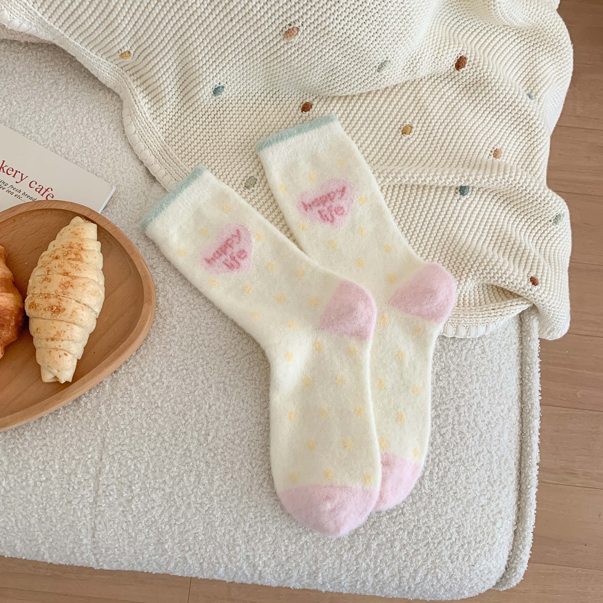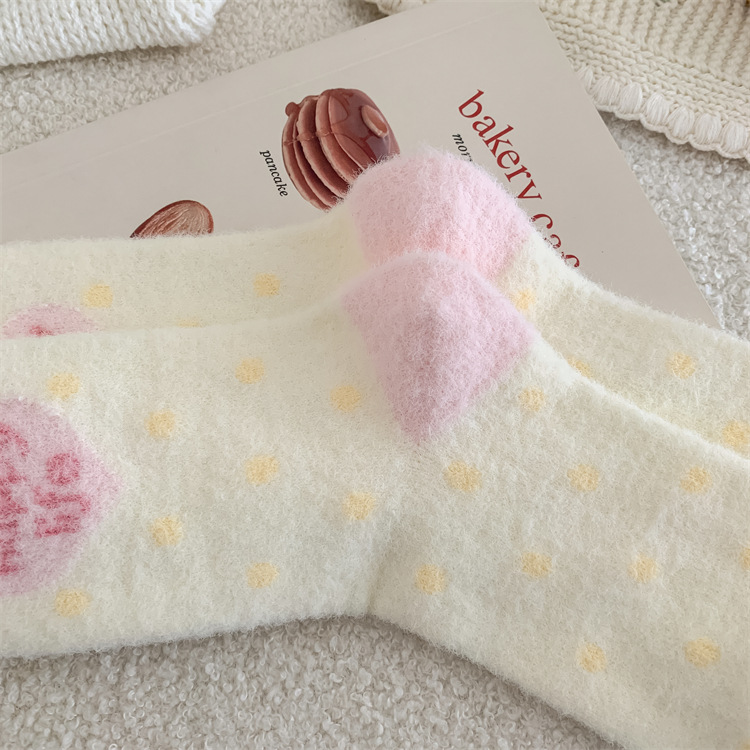 핑크 귀여운 호주 벨벳 양말 어린이 만화 중간 튜브 양말 가을과 겨울 기모 두꺼운 따뜻한 일본 봉제 수면 양말