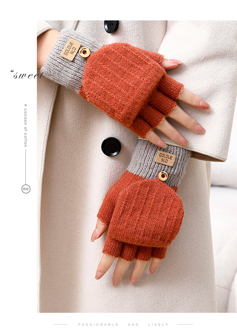 알파카 양모 장갑 여성의 겨울 가을과 겨울 한국 스타일 기모 따뜻한 터치 스크린 냉장 두꺼운 니트 플립 장갑
