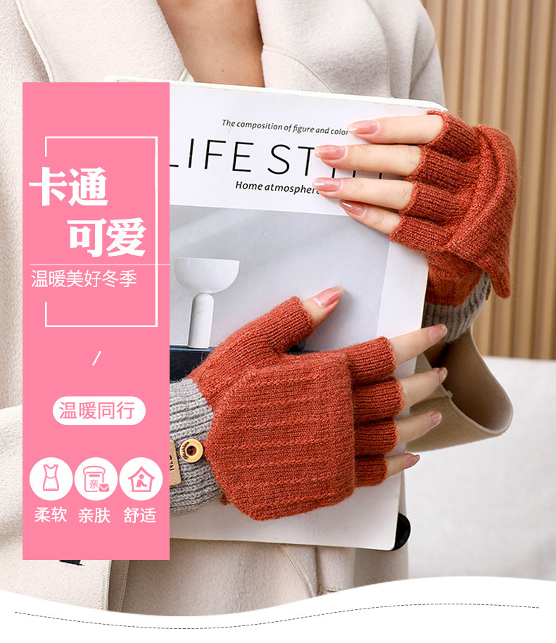알파카 양모 장갑 여성의 겨울 가을과 겨울 한국 스타일 기모 따뜻한 터치 스크린 냉장 두꺼운 니트 플립 장갑스토어 가기